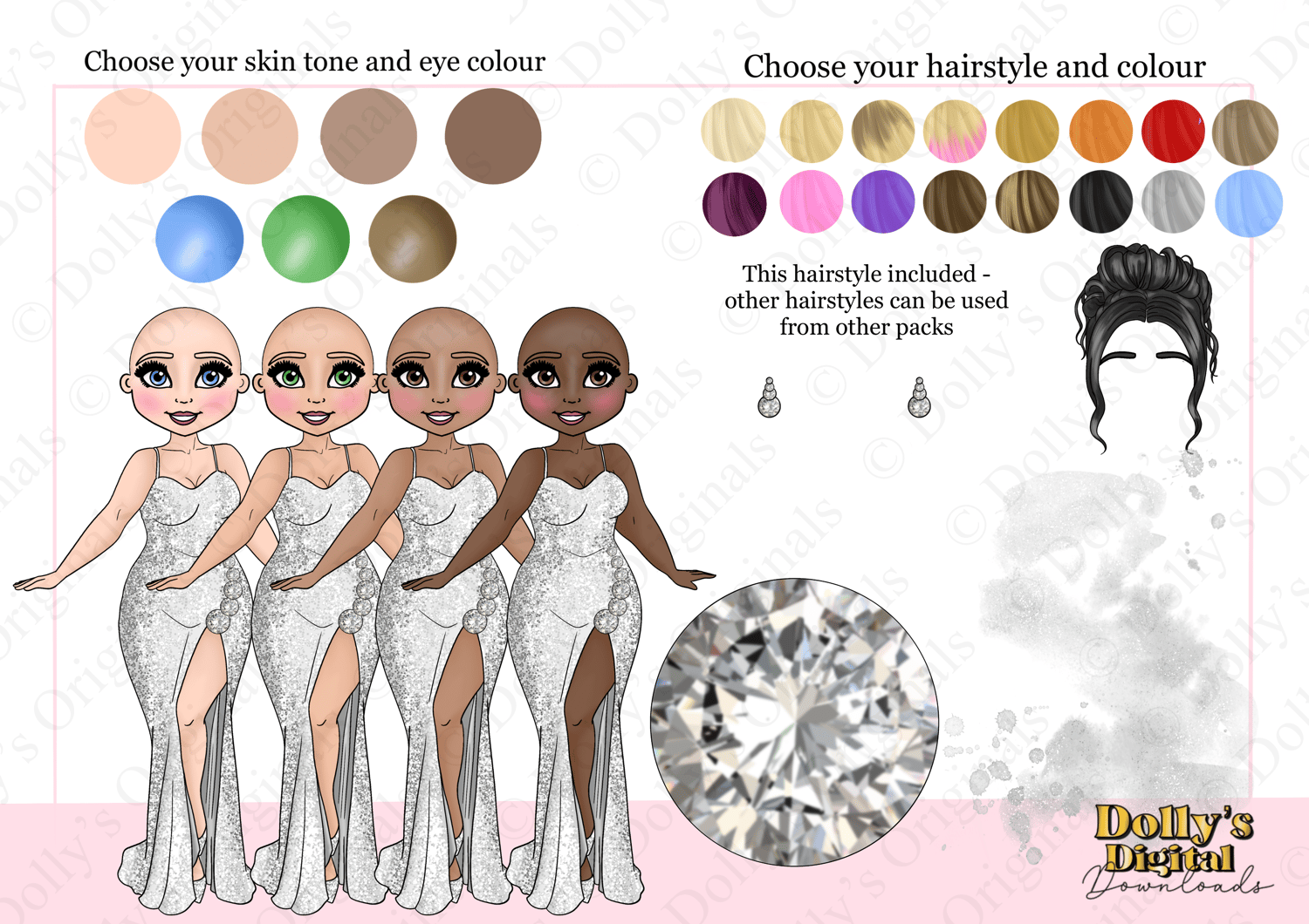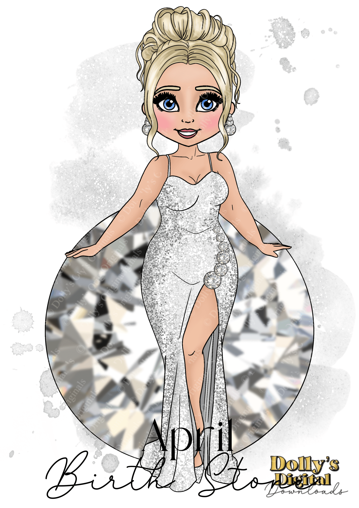 Instant digital download of our plus Size April Birth Stone Diamond Dolly Character Bundle PNG (35 PNG’s)