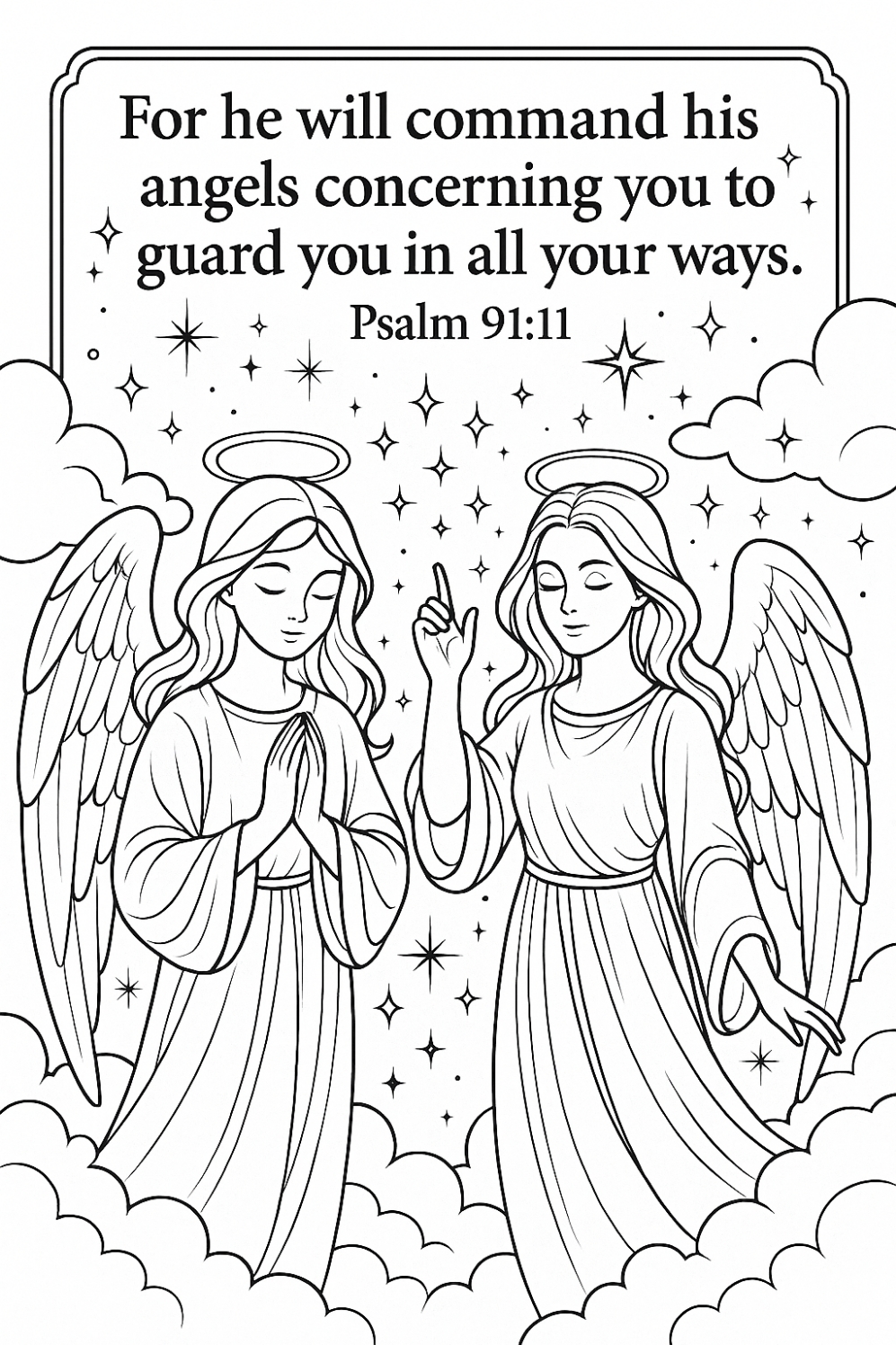 Guardian Angels – Psalm 91:11 Scripture Coloring Page
