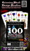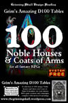 Grinning Skull Studios presents the latest in Grim's Amazing D100 Tables series, with 100 Noble Houses & Coats of Arms for all fantasy RPGs.