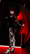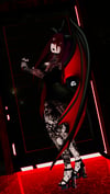 Missa has three hair swaps, hair mat changes, dress, jacket, wings, horns,demon tail, crop top, 2 pairs of pants, pasties, bra, undies,bunnie suit items, animal parts like floof tail, b2 diffrent pairs of bunny ears, bunny tail, cat ears, cat tail, puppy ears, puppy tail, individual eye maswaps, 2 heels, legs to paws, thigh highs, gag, harness, nipple piercings, nose ring, ring, 2 sets of spring joints, 2 backpacks, braclets belly button ring,spiked choker, collar w/chain, garment, grabbable whip, headpat, nose boop, follower, goth milk, cleaver, scythe, gogoloco, and marker