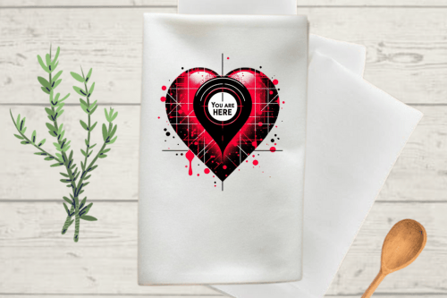 Celebrate love with a unique twist this Valentine’s Day with the "Heart with 'You Are Here'" design, perfect for sublimation on kitchen towels. This design is a sweet and modern take on romance, ideal for adding a personal touch to your kitchen.