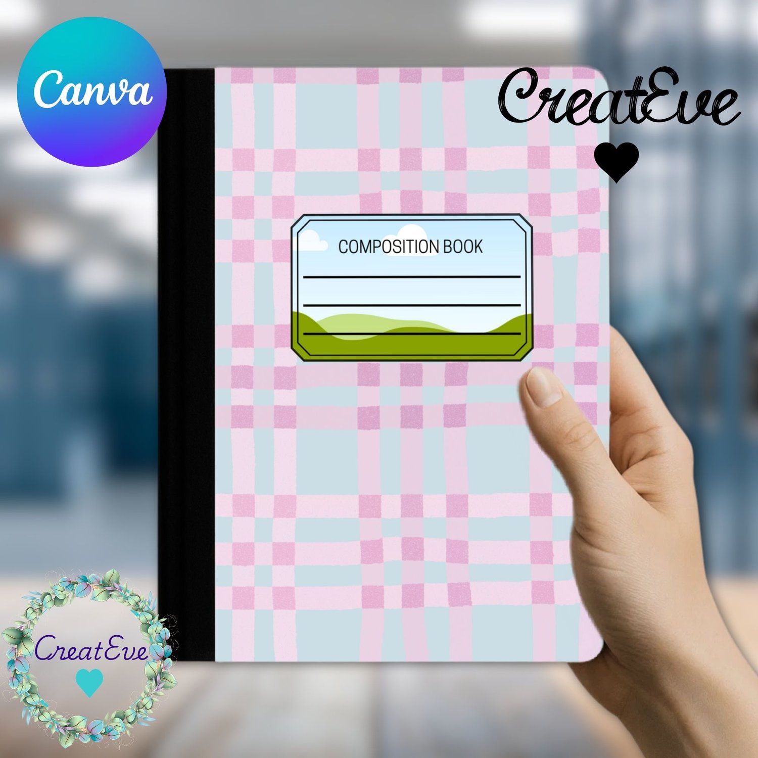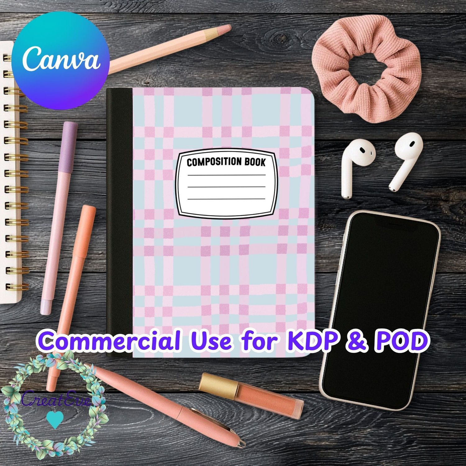 Plaid Pastel Composition Notebook 2 Colorway PNG Bundle Canva Editable AND Ready to Print,Commercial KDP Included
