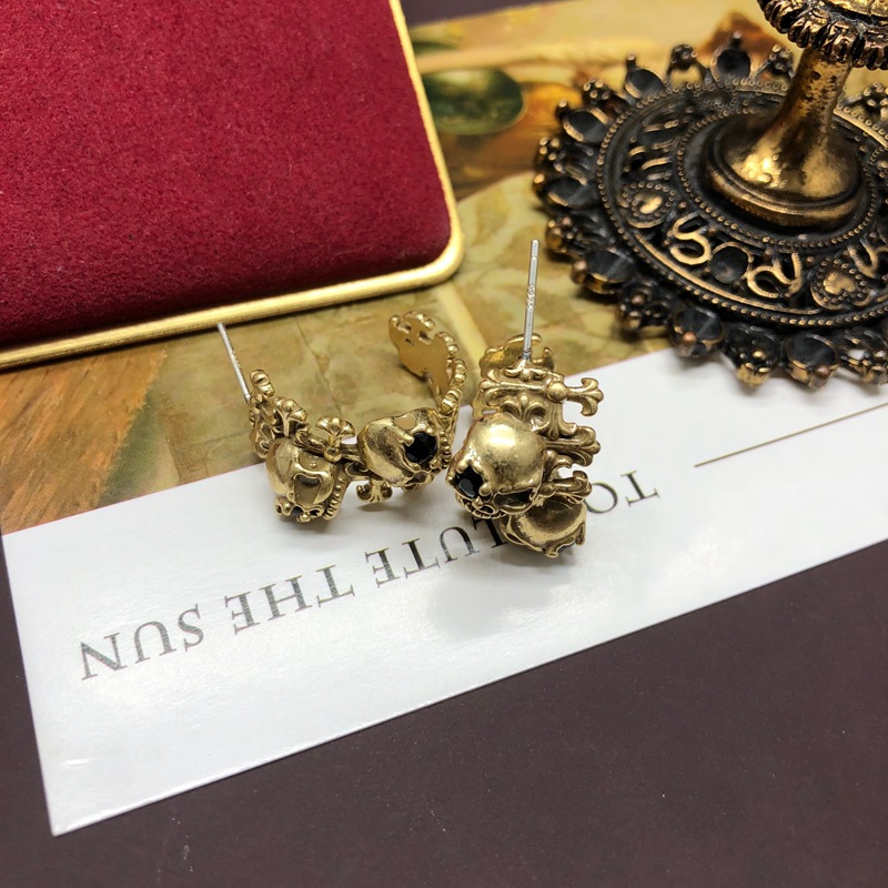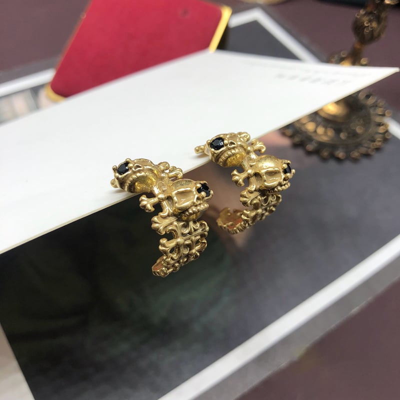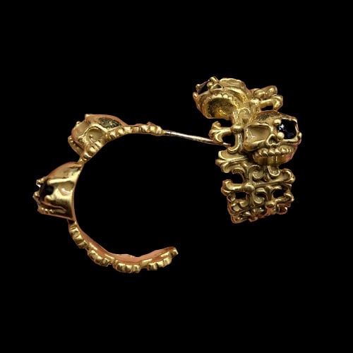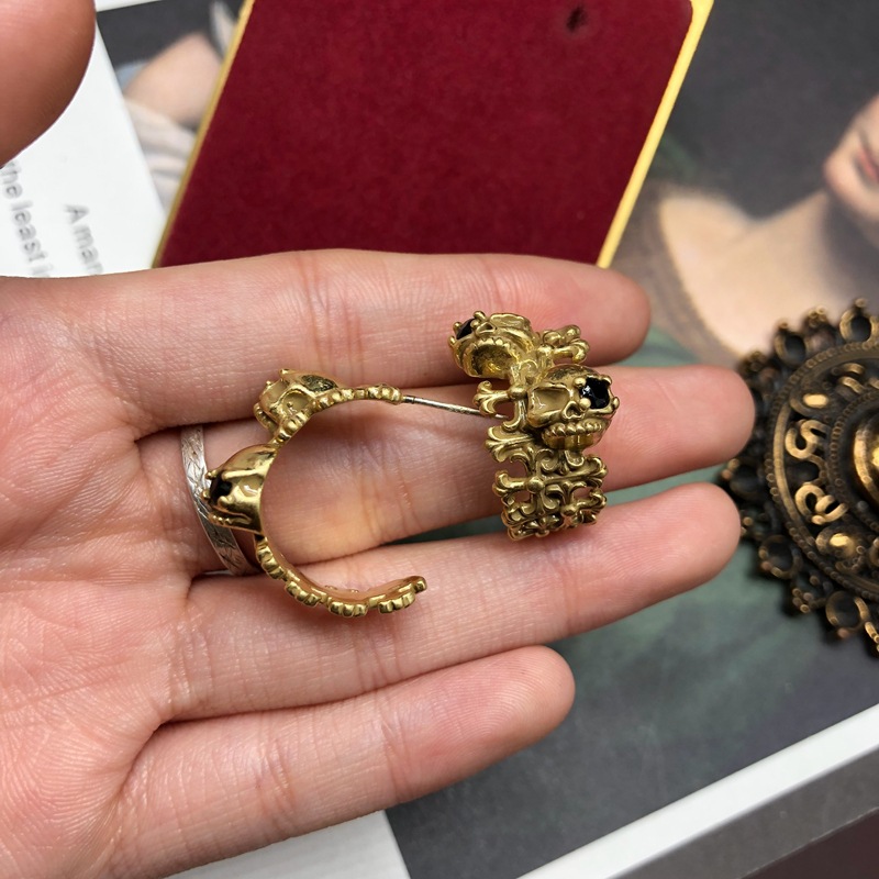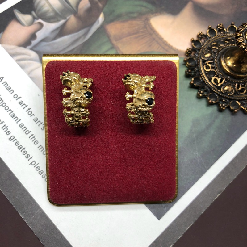 Vintage bronze skull diamond gold C-stud earrings
