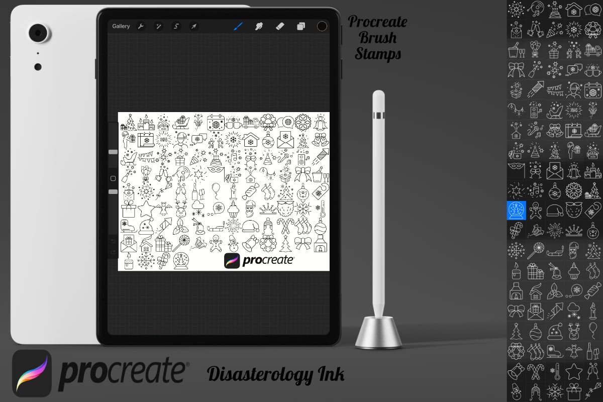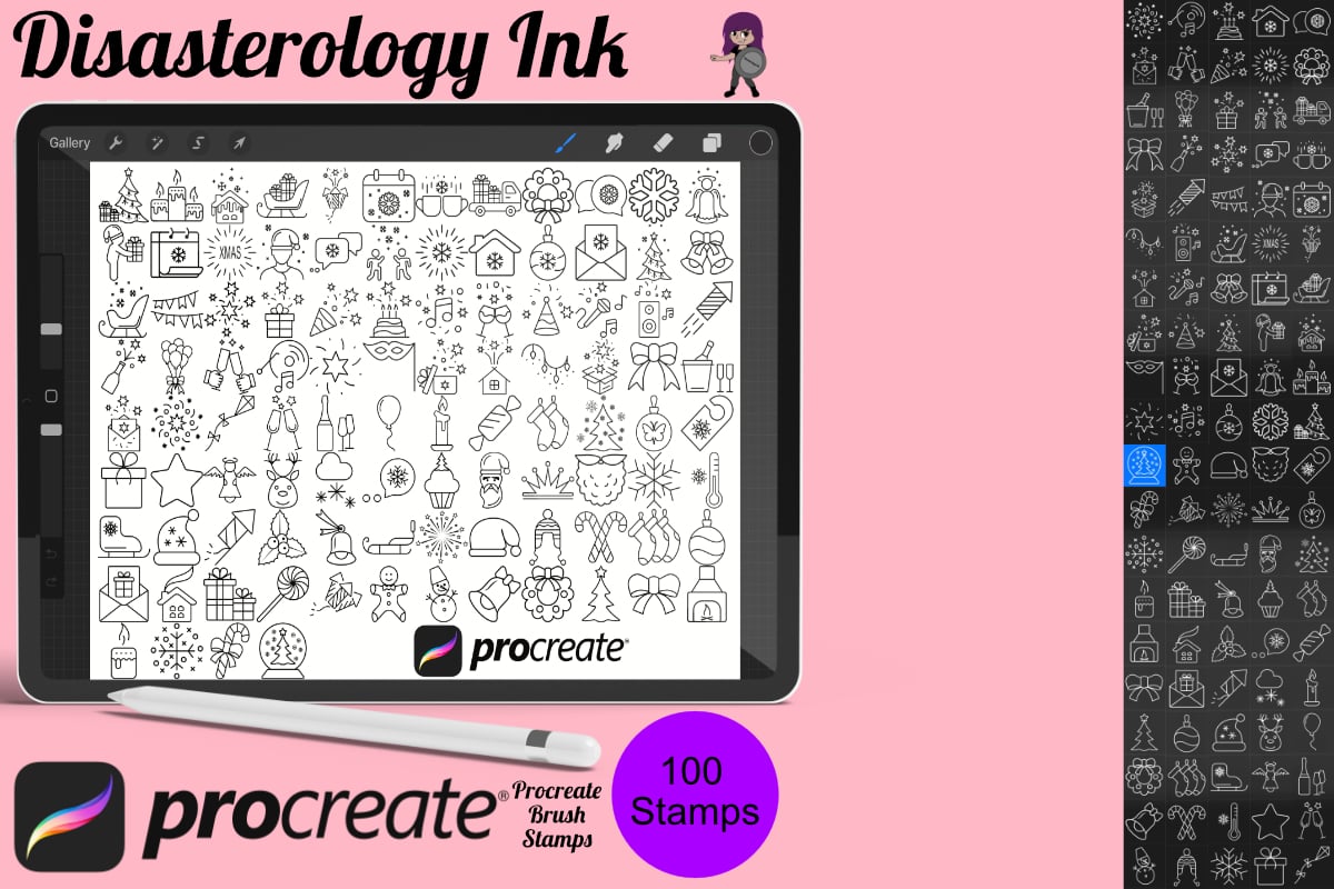 Pack of 100 Christmas Procreate Stamp Brushes! These Christmas winter stamps are perfect for making illustration projects or any procreate purpose. You can use these in any colour or opacity and they can be resized to best fit your art. You need Procreate 5.0.8 or 5X, an iPad, and an Apple Pencil. Also, these stamp brushes are not pressure sensitive and can be used with third party stylus, Apple Pencil or even your finger.