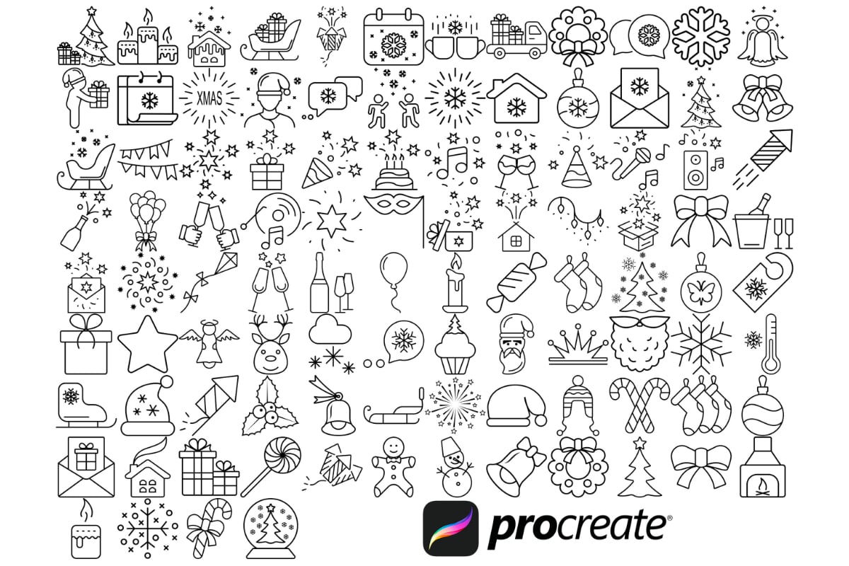 Christmas Winter Clipart Icons Procreate Brush Stamps Set 1, 100 Christmas Stamps