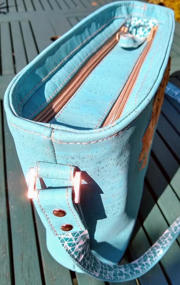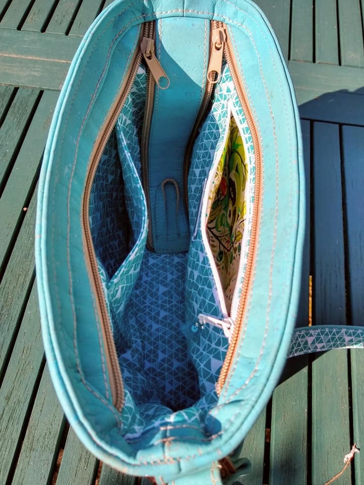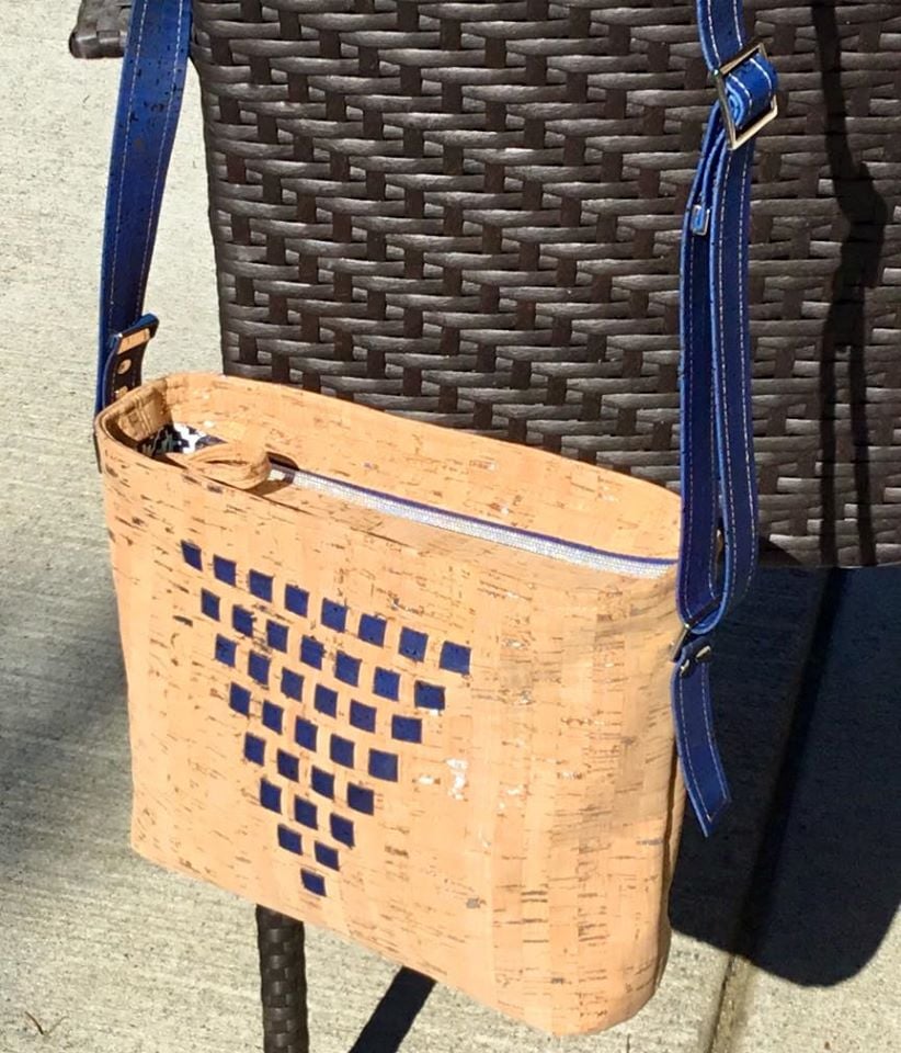 The 'Lambda Weave Bag' is designed to be sewn in Faux leather or Cork Leather but I have also added a fabric option with minimal faux leather for those who don't feel confident to try and all faux leather bag with a weave design specifically for this option.