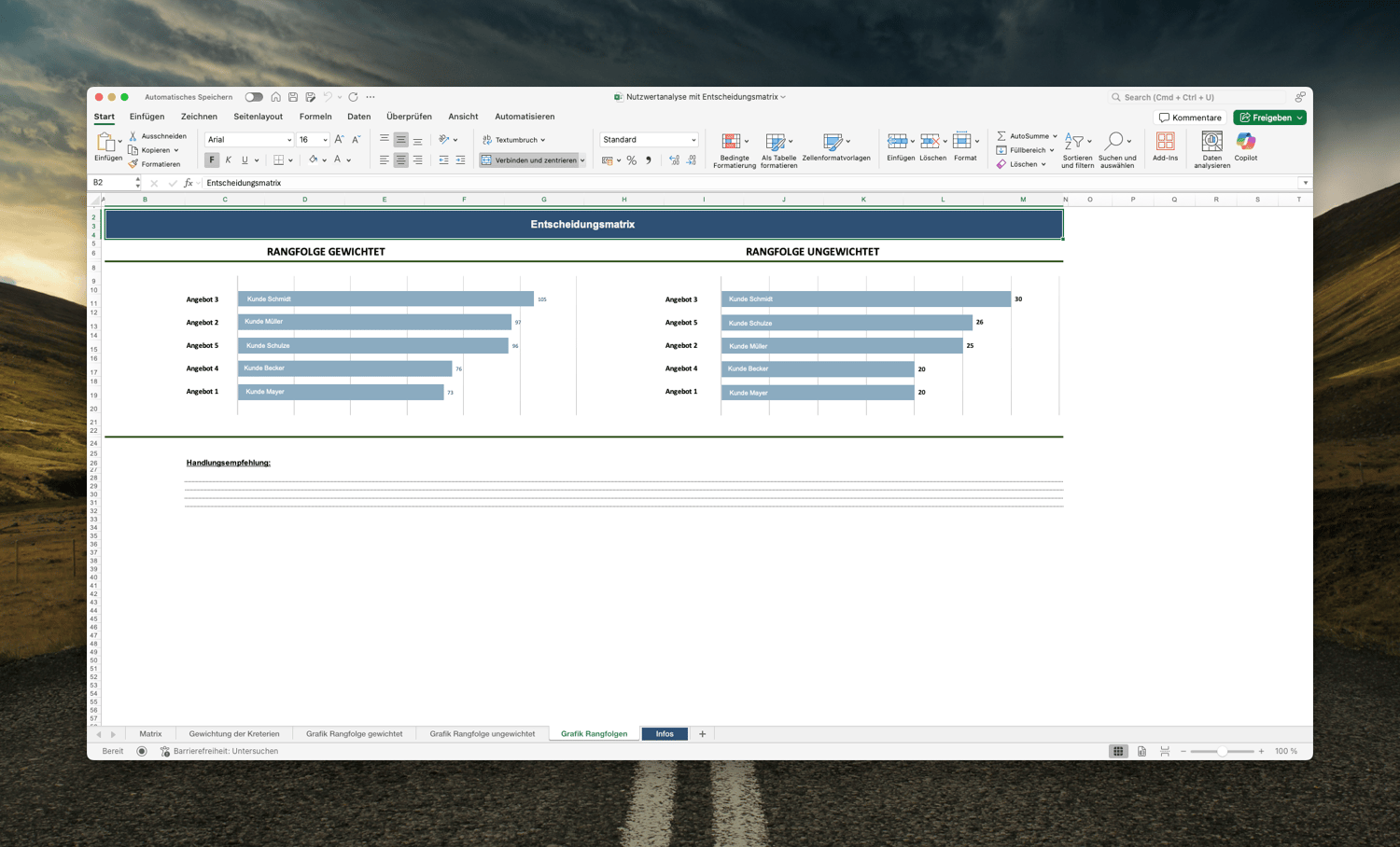 Alles in einem Sheet: Matrix, Gewichtung und Dashboard auf einen Blick.