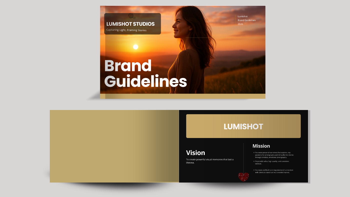 This template helps you define your brand’s visual style, typography, color palette, and photography direction, making it easier to present your brand professionally to clients.