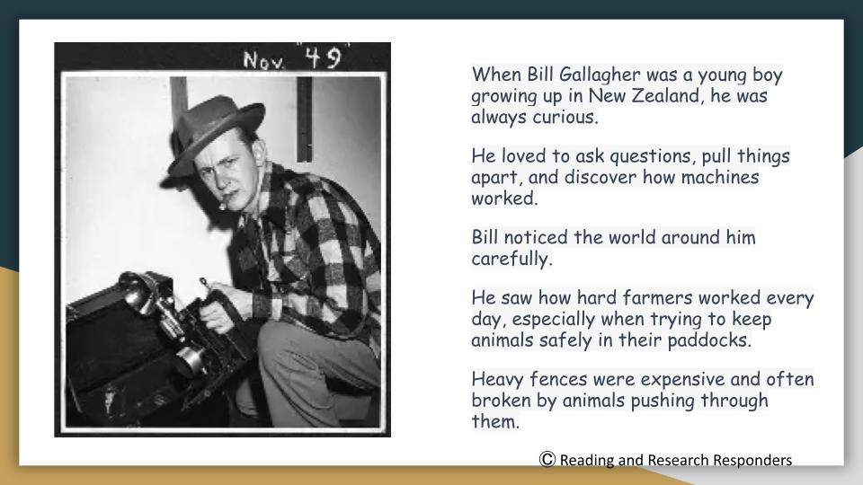 Our latest Reading Responders resource shares the inspiring New Zealand story of Bill Gallagher, the inventor of the electric fence β and how curiosity, perseverance, and courage can change the world.