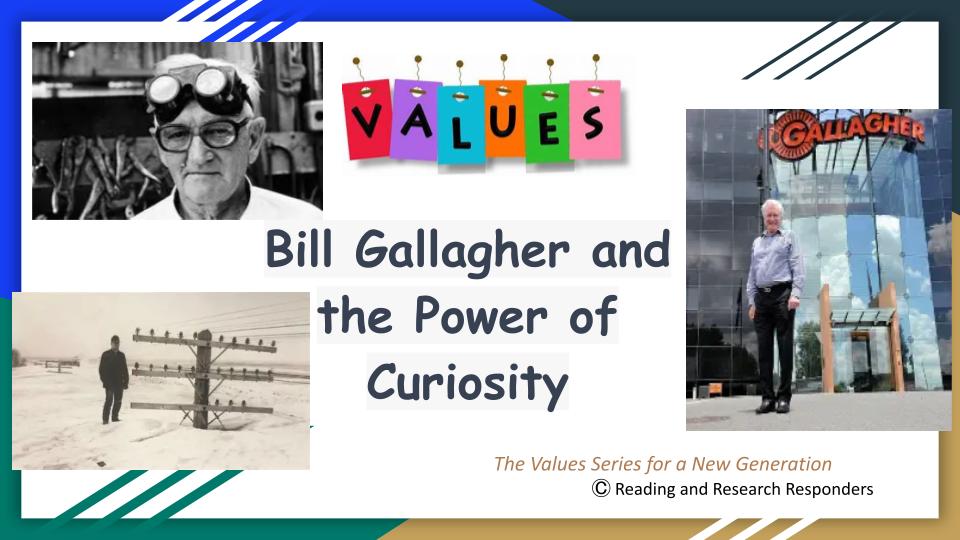 - β Learners explore how Bill Gallagherβs curiosity led to innovation and discuss how values influence actions and outcomes.