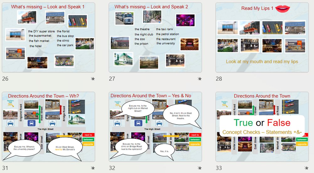 - Speaking: map-based question and answer, pair work with picture prompts, roleplay