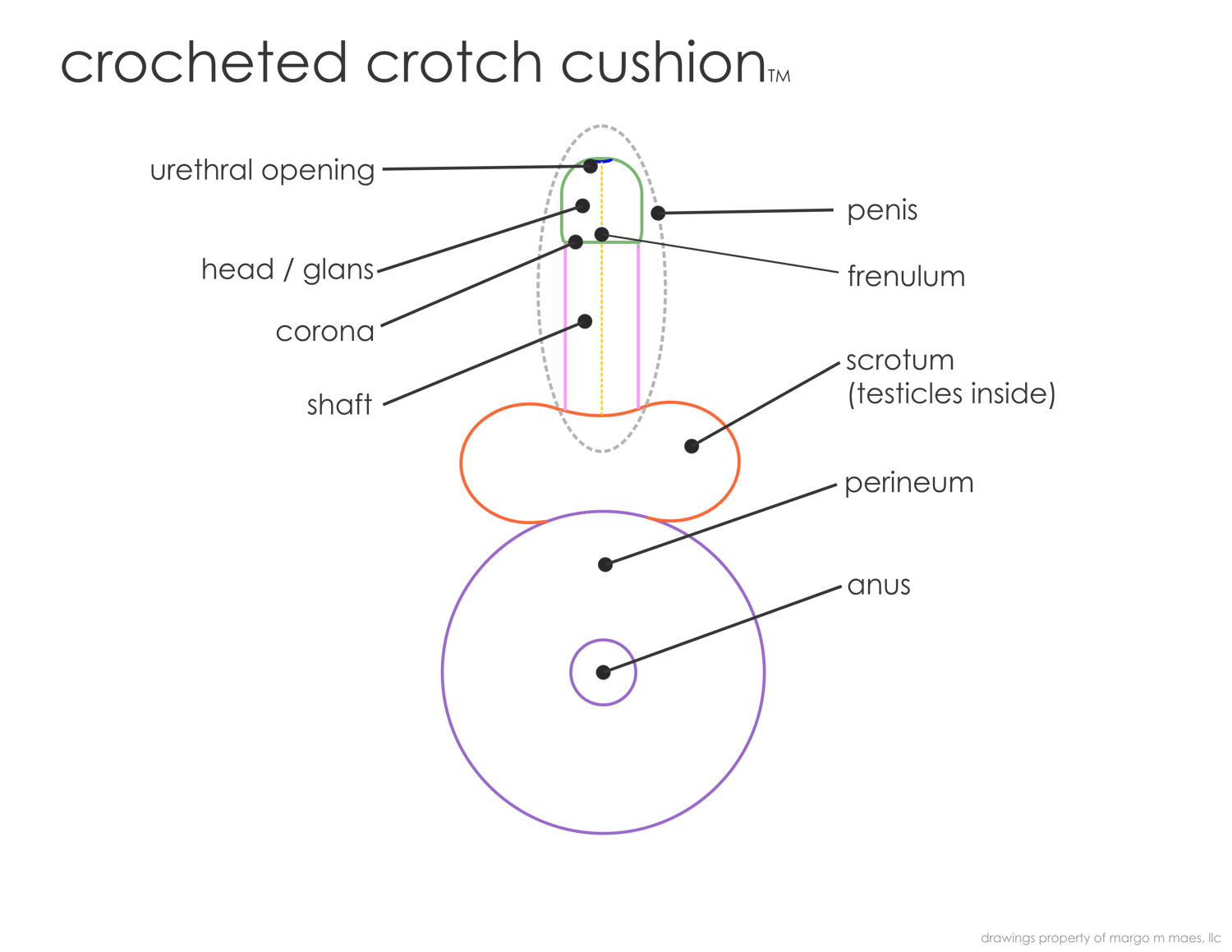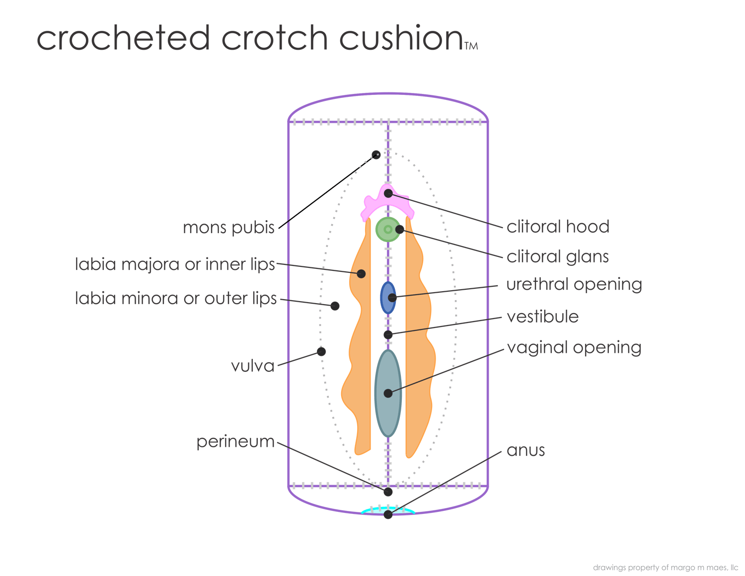 After lots of love and labor, I’m thrilled to finally offer my Crocheted Crotch Cushions™ for your sexuality education, advocacy, therapy, or clinical sessions. I worked to create a huggable cushion to be used to support inclusive sexuality education, help destigmatize our genitals, celebrate all parts, including the often-forgotten perineum and anus, while still being a cute, cuddly cushion that is durable and fun to toss around.