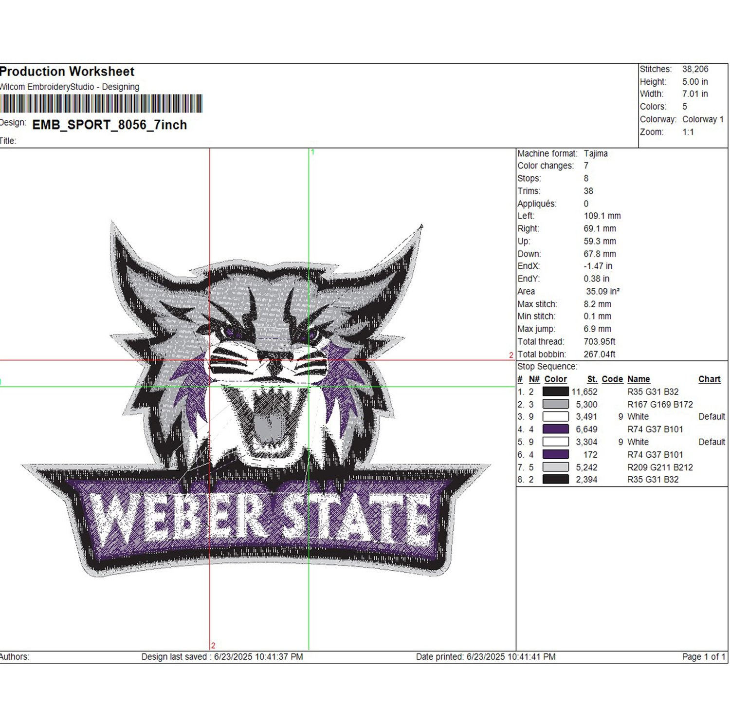 NCAA Weber State Football Team Logo Embroidery Files, NCAA Weber State Wildcats Team Embroidery, NCAA College Football Teams, Weber State Team Emroidery, 3 sizes, Machine embroidery designs, Digital Download