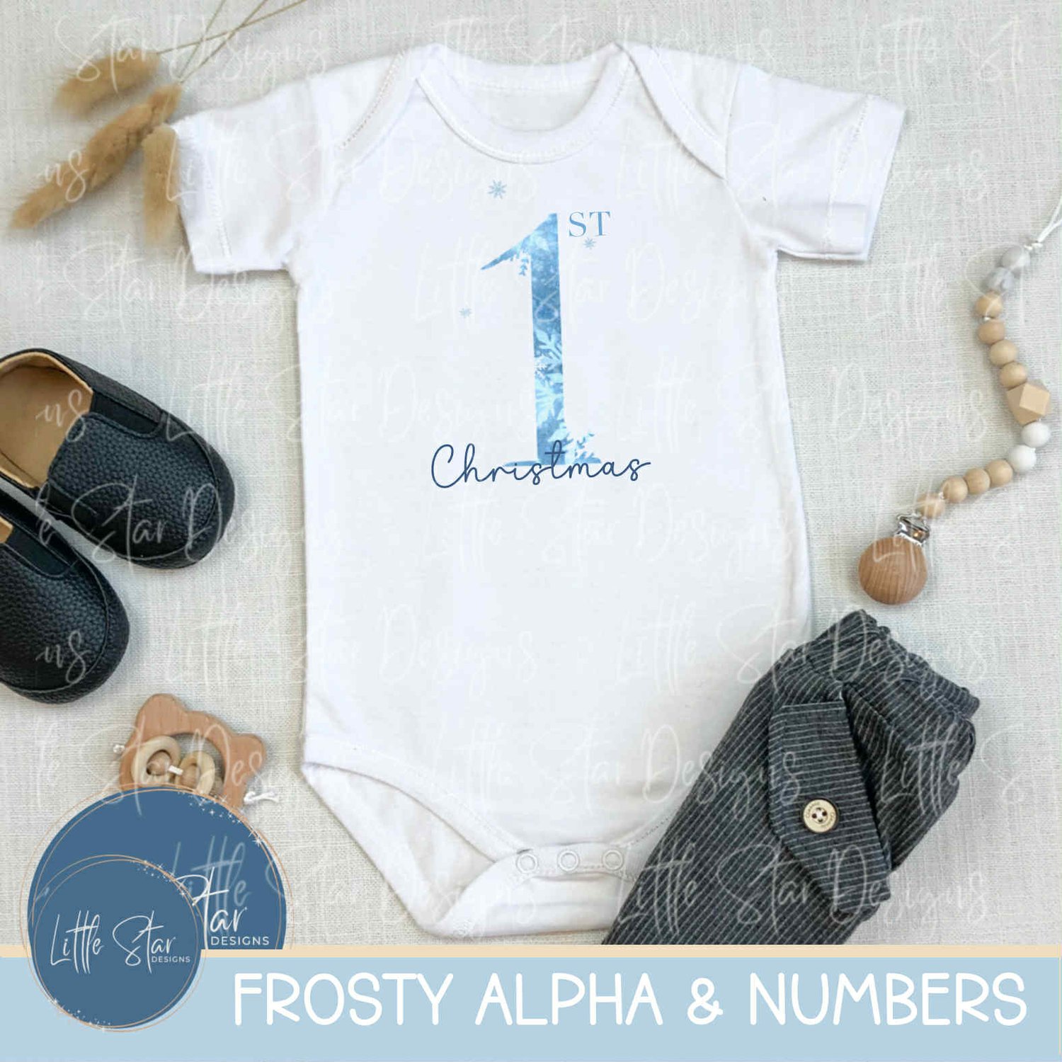 This is a high-quality hand drawn (300dpi PNG) clipart set digital download of my original artwork, titled “Frosty Alpha & Numbers”, designed for sublimation and print.