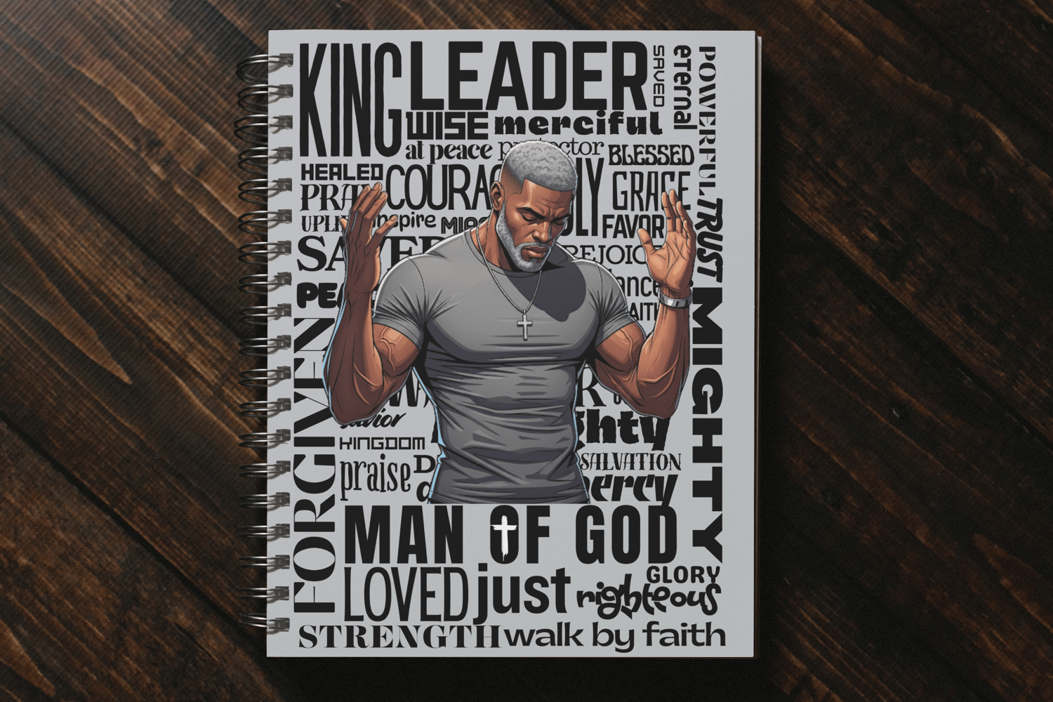 This Man of God Journal Cover design is the perfect way to create faith-based journals, Bible study notebooks, and inspirational planners. Featuring a powerful prayer illustration with uplifting scripture-inspired words in the background, this 5x7 cover is a bold reminder of strength, faith, and God’s grace.