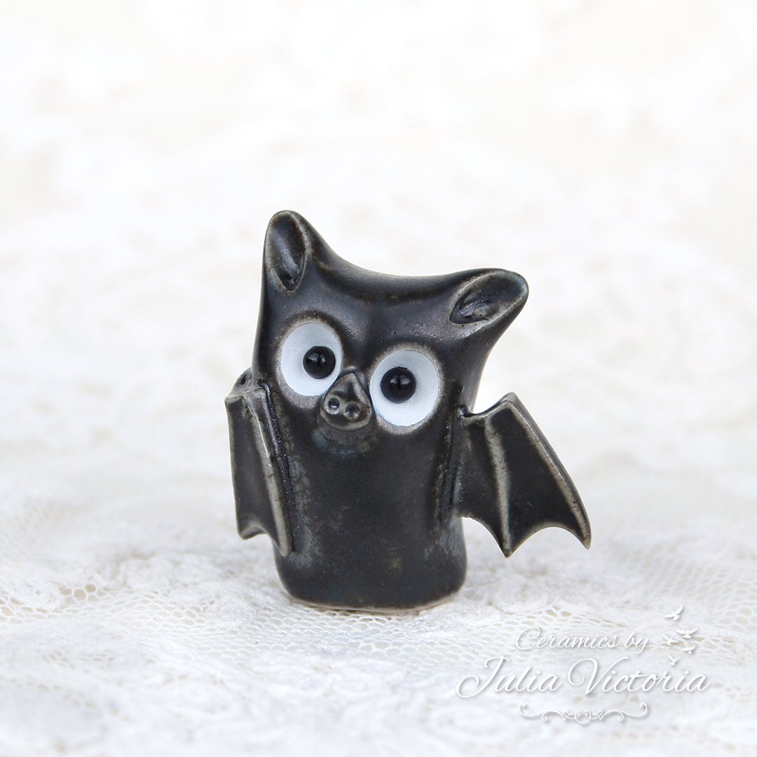This cute little bat is looking for a new place to sleep. It is hand-sculpted in ceramics, glazed and painted by me