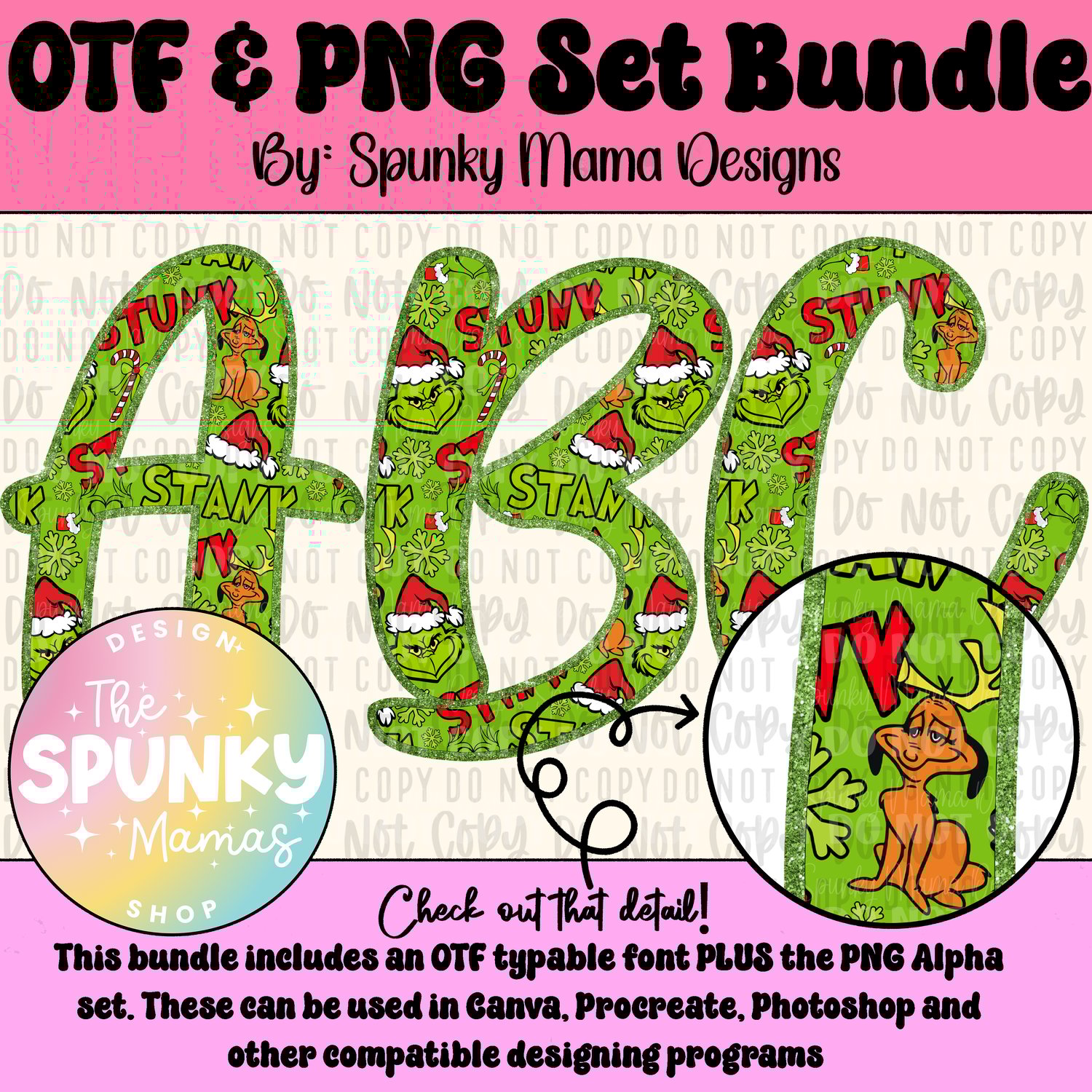 Green Stink Stank Stunk OTF Font and digital PNG Alpha