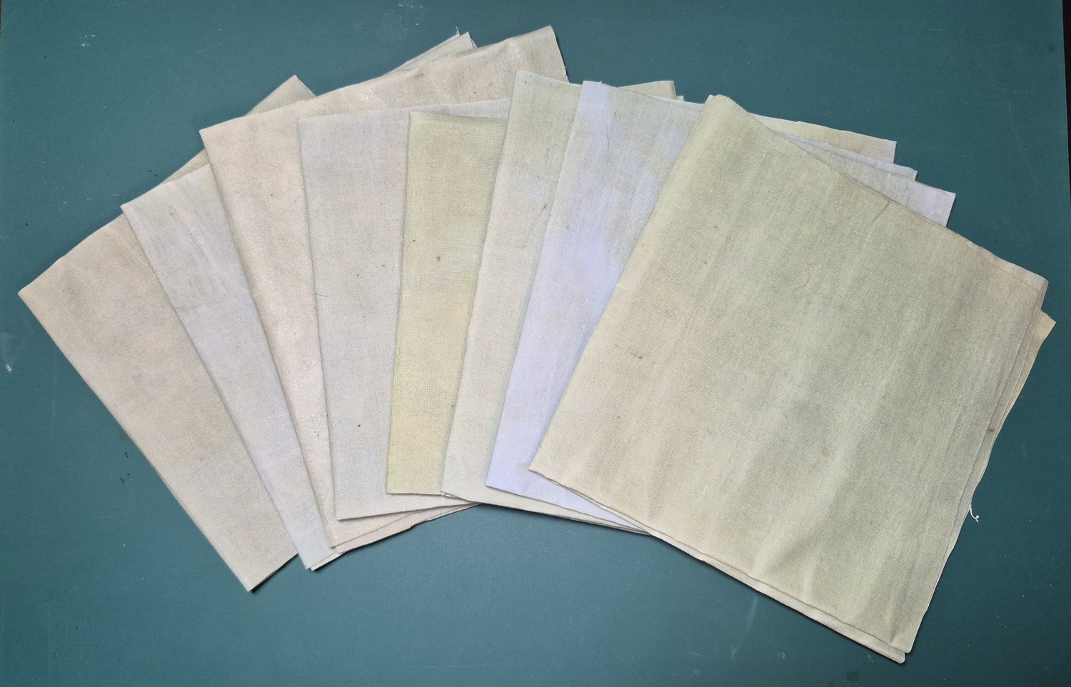 Handgjorda bivaxdukar i återvunnet bomullstyg. De funkar precis som vanliga vaxdukar för att täcka skålar, slå in mat och minska plastanvändningen — men de är inte perfekta i kanten eller helt jämnt vaxade.