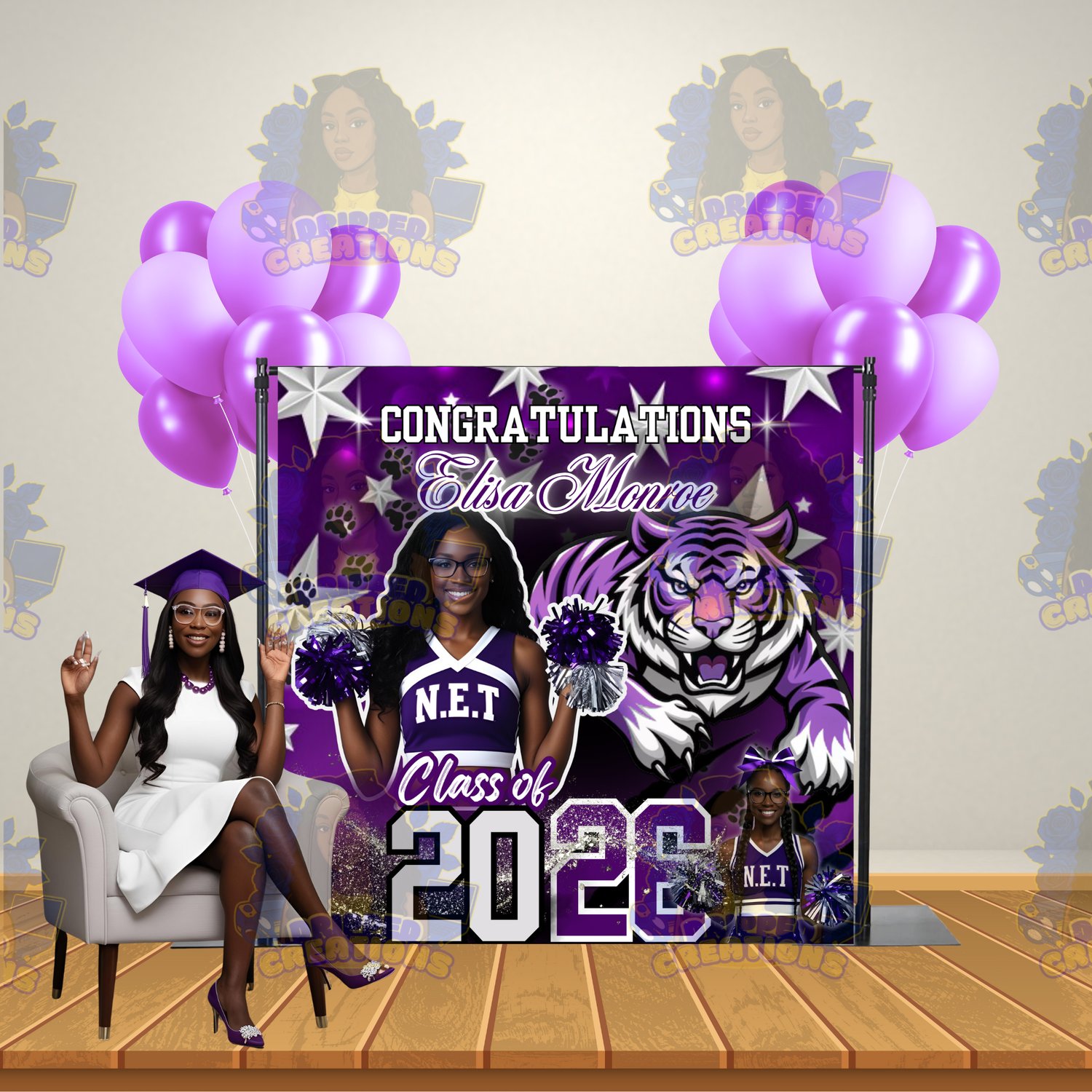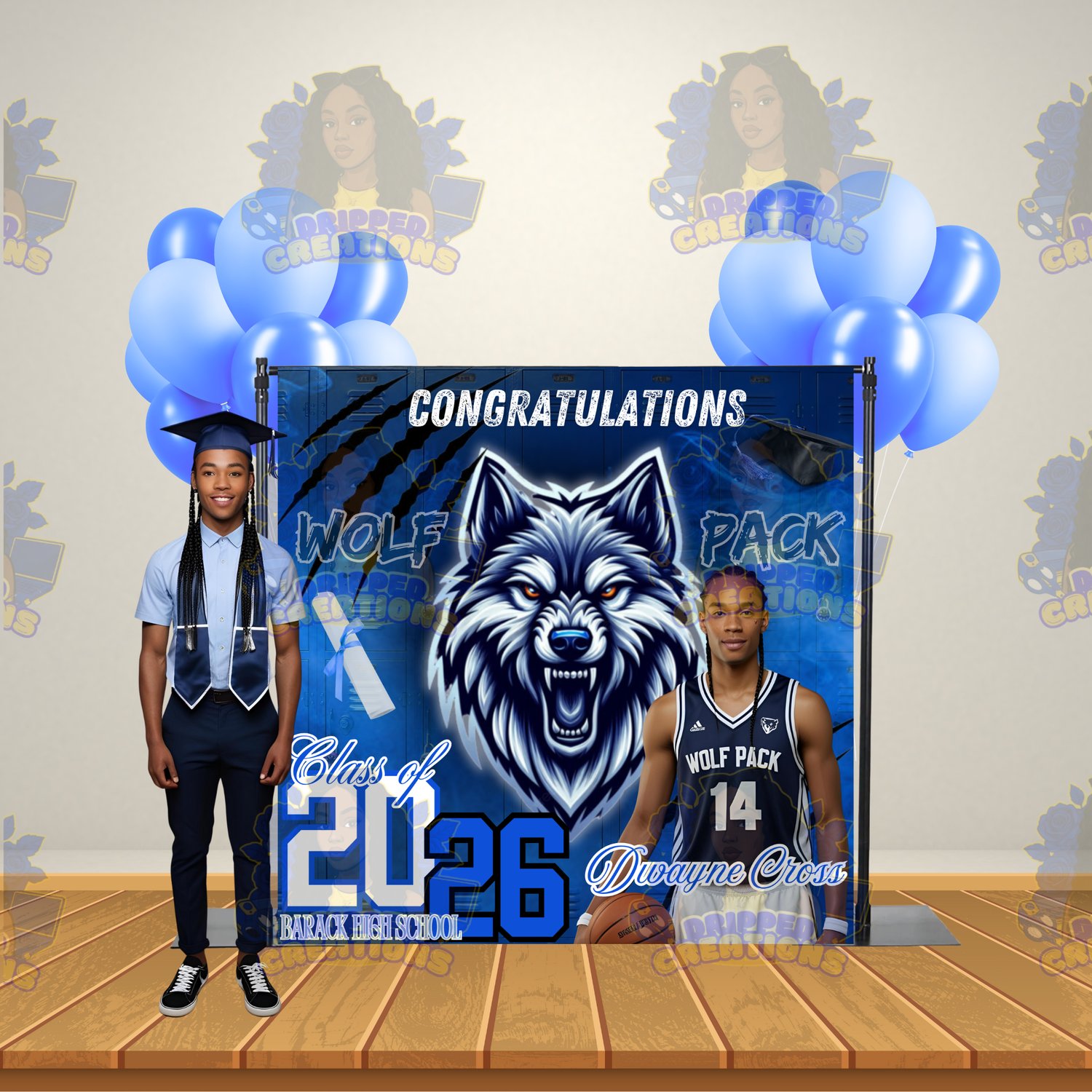 4 Digital Graduation Backdrop Template including 4 Mock Ups