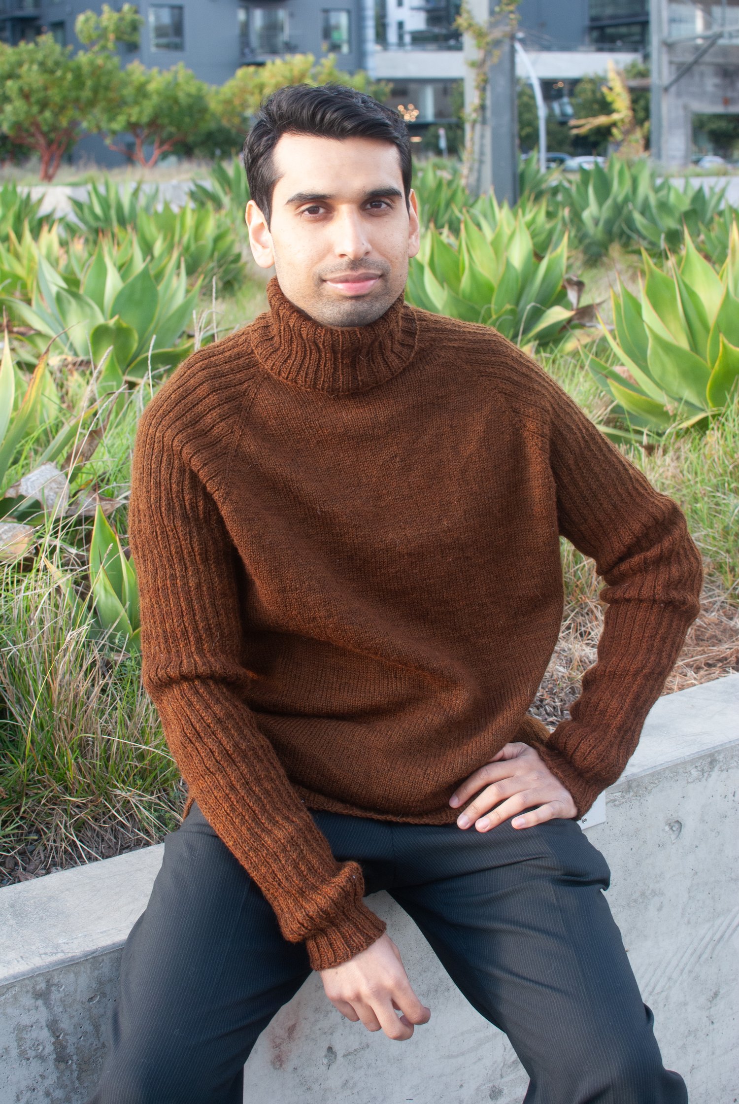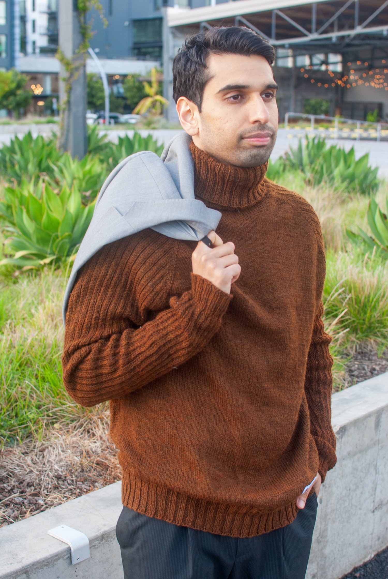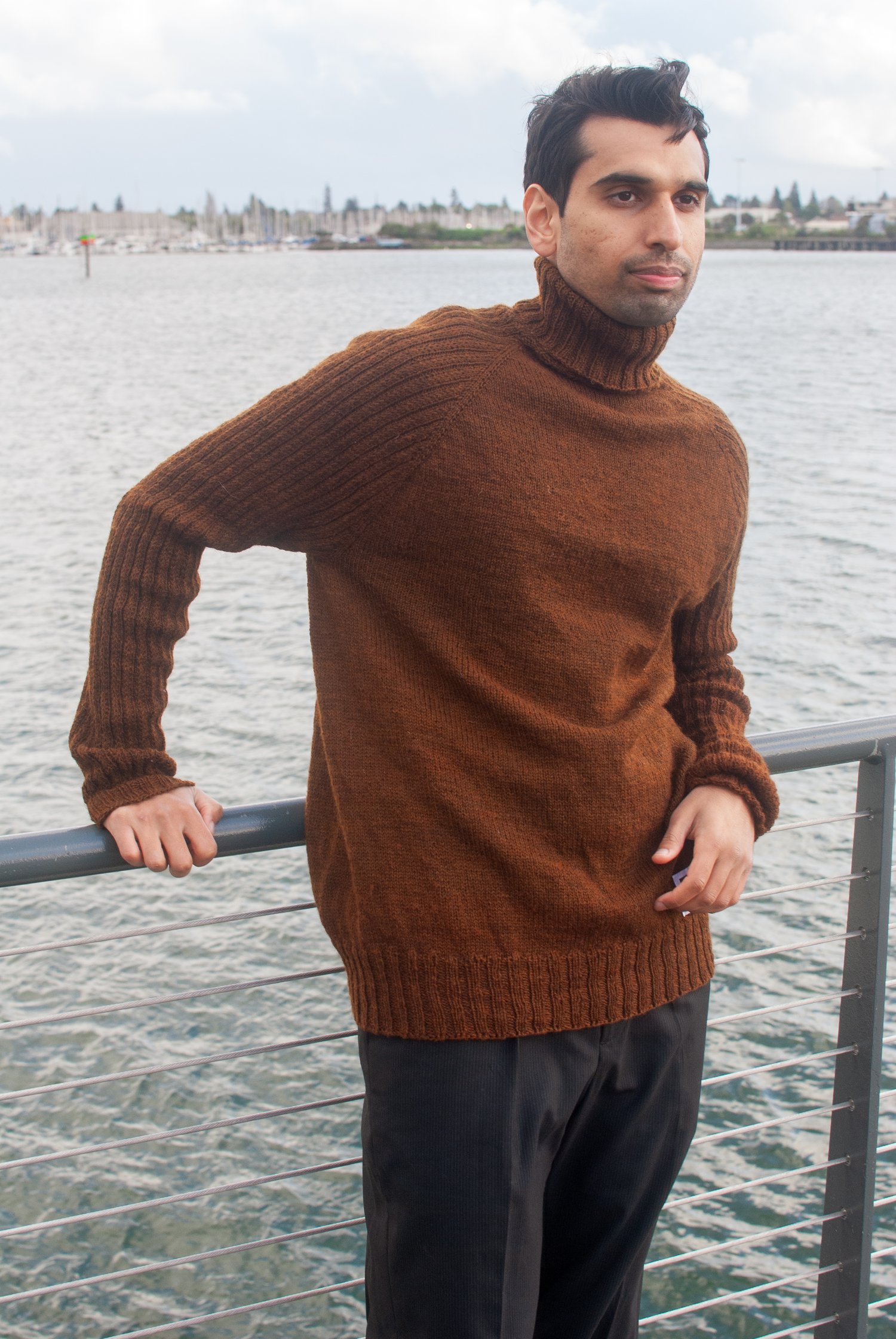 This sweater pattern features a turtleneck, textured Slip Stitch Rib sleeves and several options for modifications. It brings the timeless class of a turtleneck that can be layered with your outerwear, but can also standalone and be visually appealing on its own. The slip stitch texture on the sleeves can be worked easily and provides great texture. This pattern can also be modified to enhance your fit with modifications to sleeve length, body length, and the neck shaping with optional short rows.