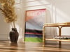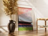 Celebrate the heart-pounding spirit of Crystal Palace FC with this dynamic illustrated poster of the iconic Selhurst Park — the historic South London football ground! Perfect for fans, this digital wall art captures the stadium's classic red and blue stands and electric matchday atmosphere in vivid retro style.