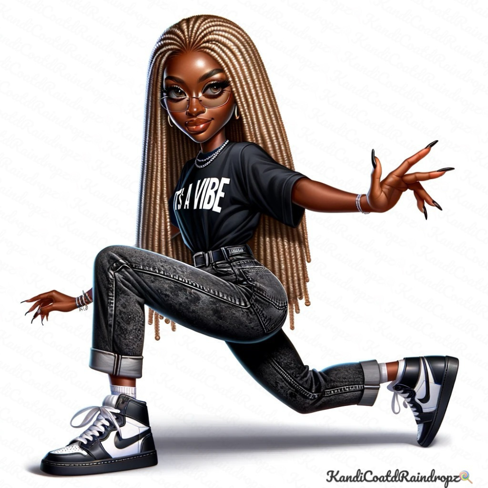 Introducing a bangin’ digital image bundle featuring 10 ultra-fly images of shapely queens rockin' out with gorgeous looks, each embodying a fresh & live vibe. These Queens are decked out in crisp tees stamped with “It’s a Vibe,” paired up with the classic denim jeans and slick hi-top kicks. Each pose they strike is captured in dynamic snapshots that highlight their outfits and fine details.