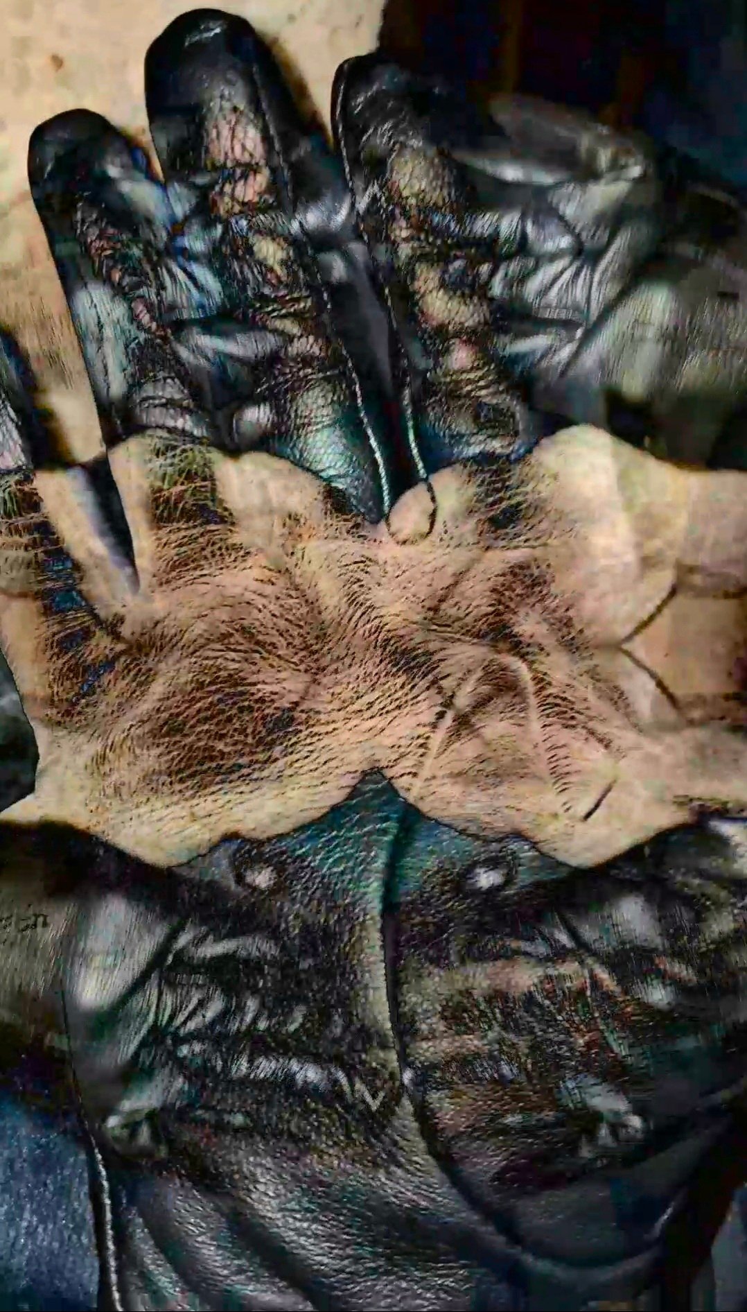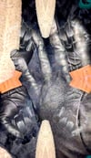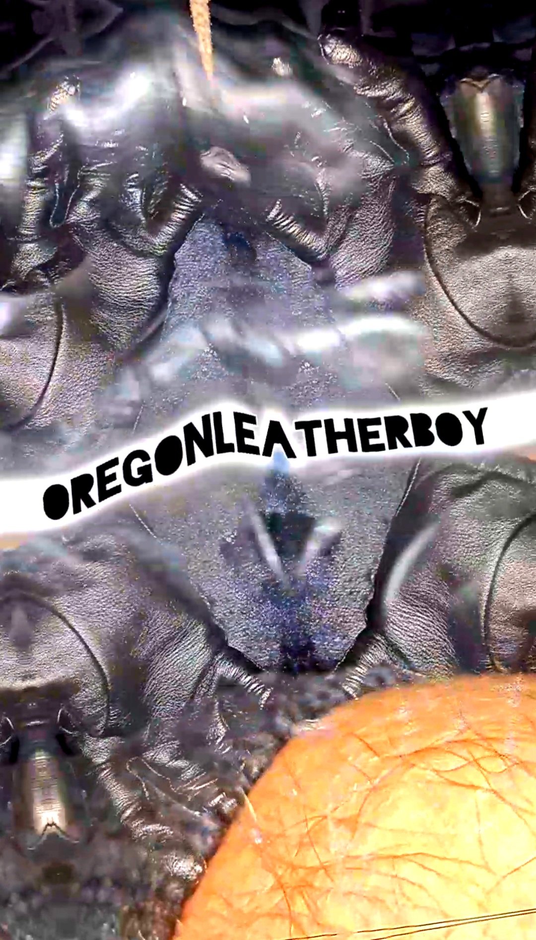 with tight, smooth leather gloved hands with overtones of chastity and obedience