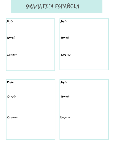 - Gramática, donde puedes anotar cualquier regla gramatical con ejemplos