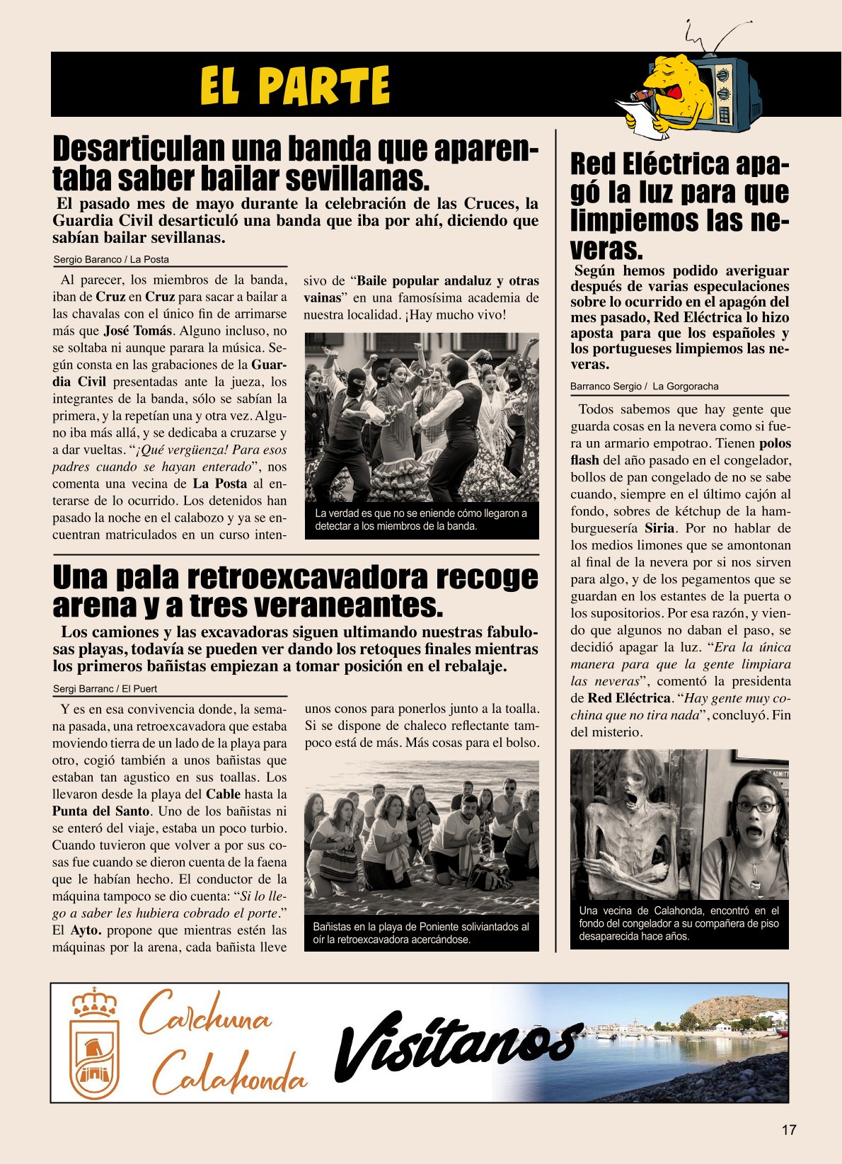 Con los artículos más descacharrantes y los mejores autores de humor, ya consagrados y nuevas promesas, como VENTURA & NIETO, ÁLVARO TERÁN, SALAZAR, JOSÉ LUIS MARTÍN, MART YULS, RICARDO y NACHO, PABLO RÍOS, IDÍGORAS Y PACHI, CONTRERAS, AZAGRA, GALLEGO & REY, IÑAKI Y FRENCHY, ALBERT GENÉ, MIKI Y DUARTE, JOSÉ TOMÁS, FARRUQO, MARITO, JAE TANAKA... Y muchos más.