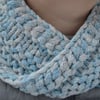 Second up, String Theory Moebius. Have you got the world on a string? When life throws an unexpected twist and you just need to knit something brainless, cast on String Theory Moebius. Philosophically deep, in theory only, this easy-as-an-I-cord design starts with just that. Pop your skein in a bag and face the challenges while knitting! Once your I-cord is complete, a touch of infinity appears with the moebius. Fun to knit; great to wear!