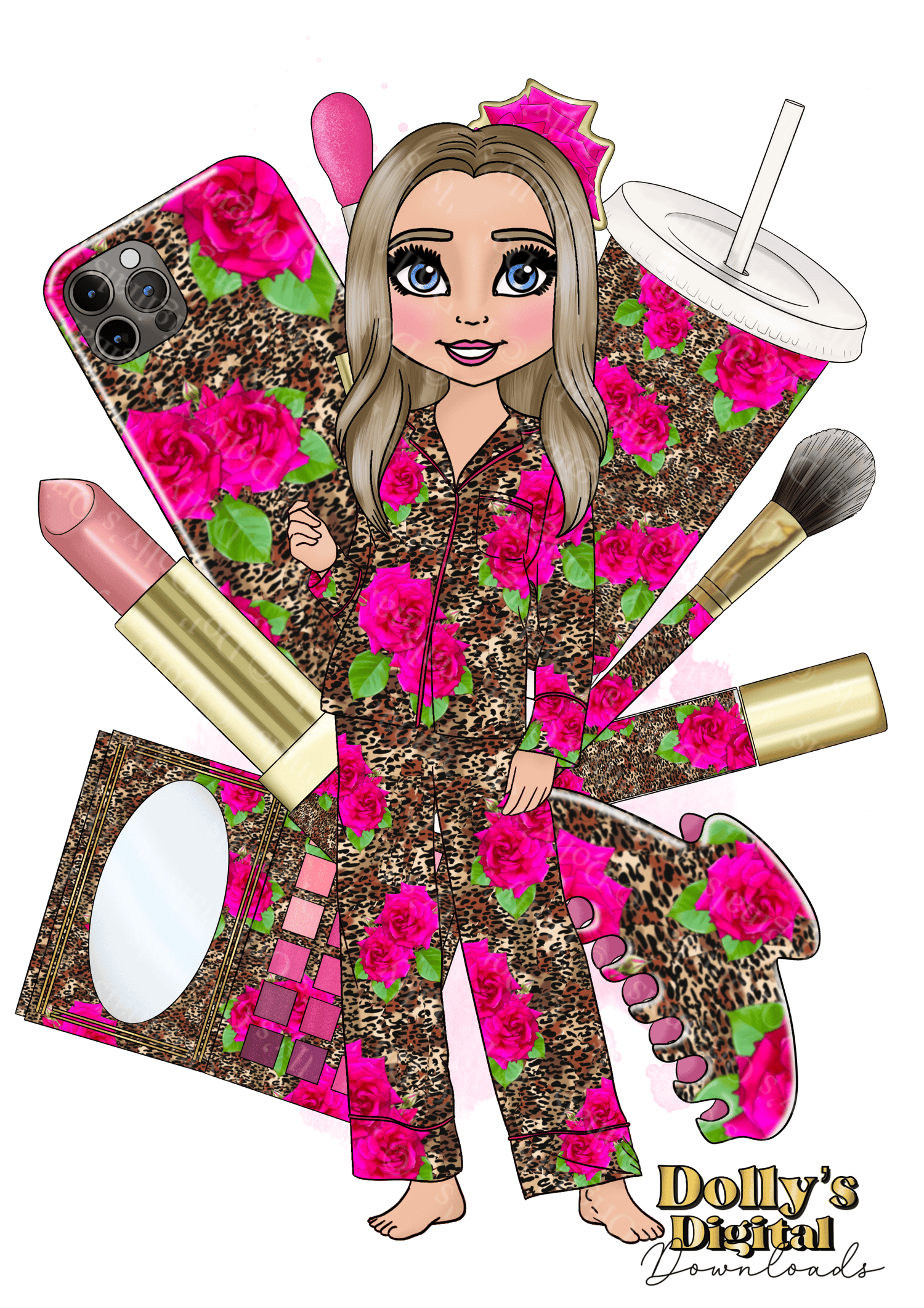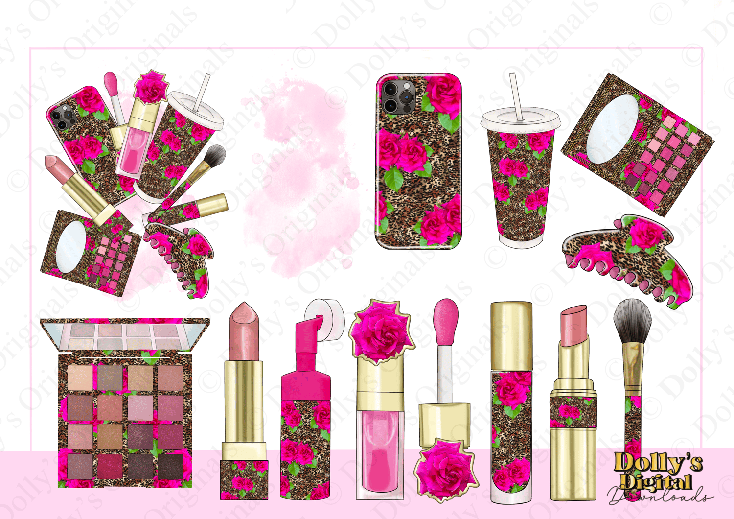 Instant digital download of our Leopard and Pink Roses Makeup Dolly Pack PNG (40 PNG’s included)