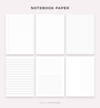 Notes, Lined, Graph & Dot Grid Paper Pages Bundle Printable, A4/Letter Size