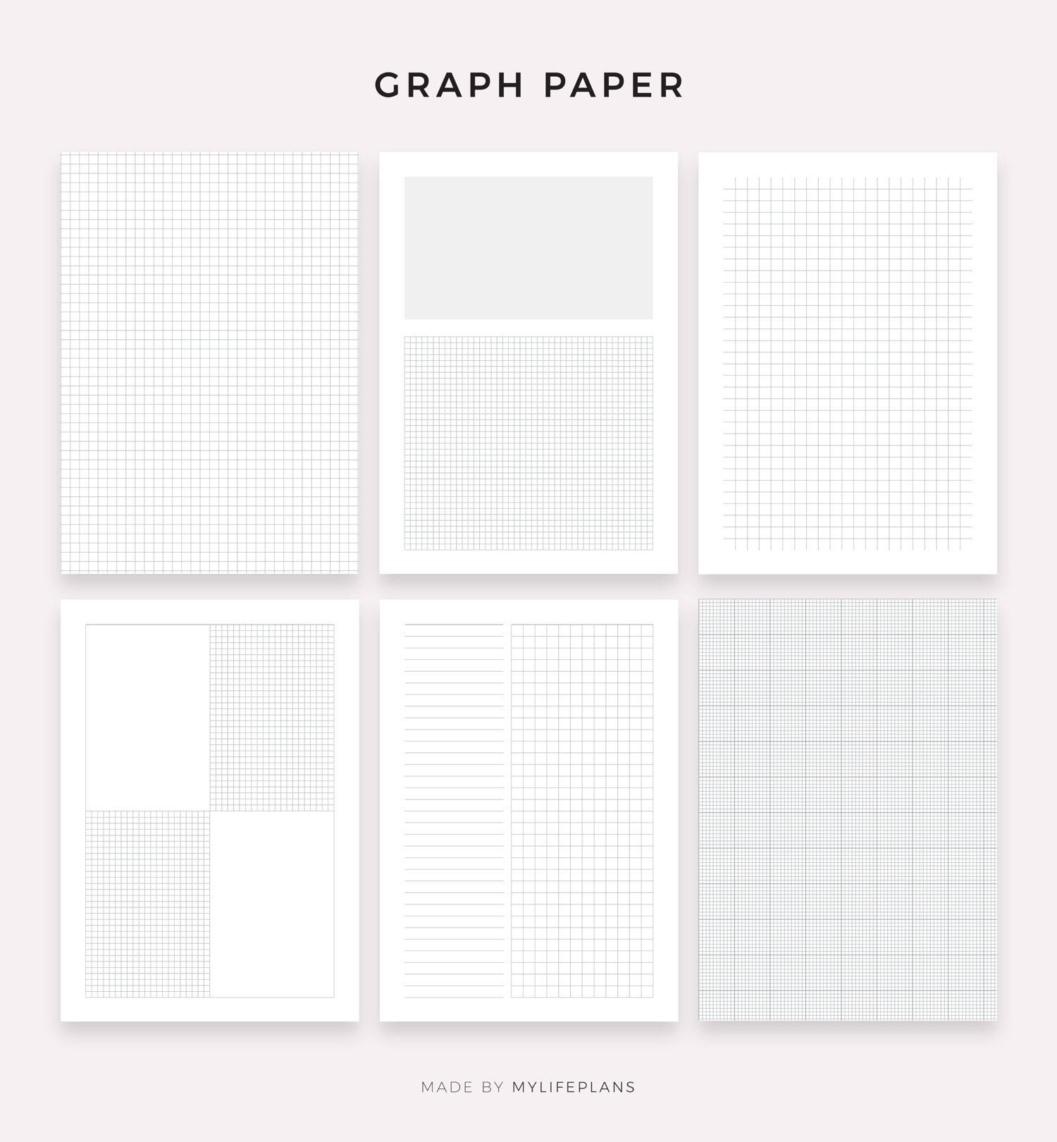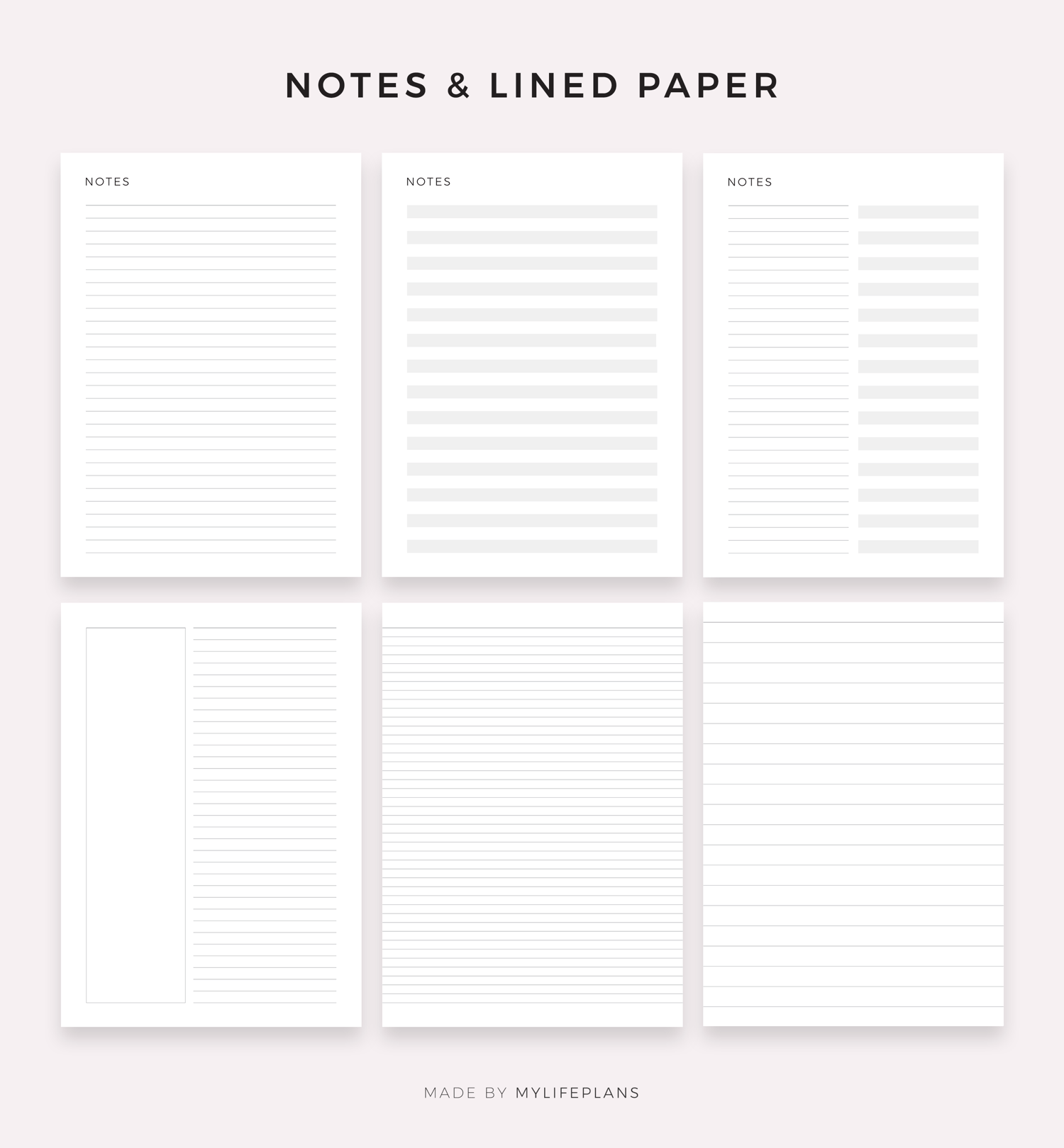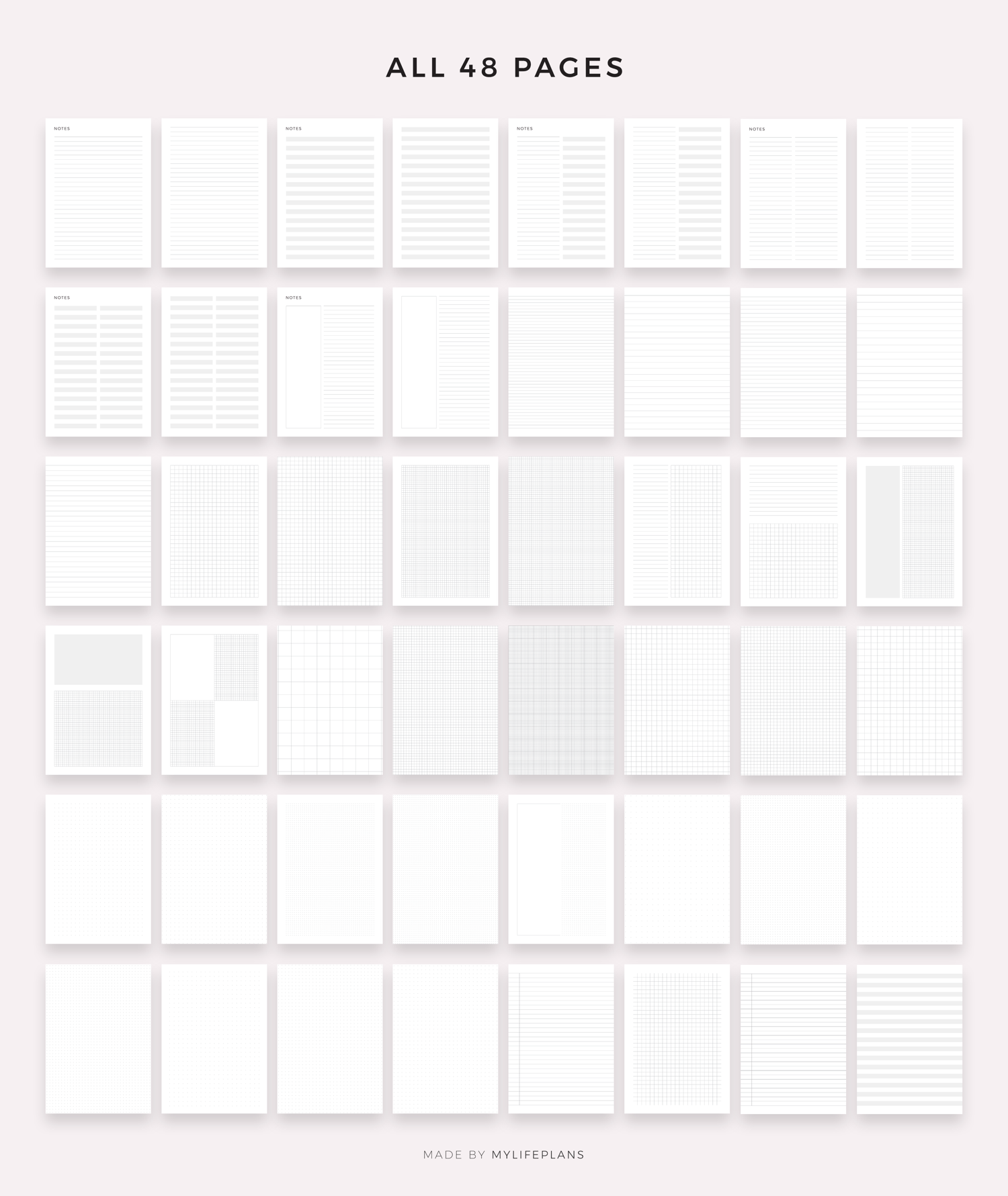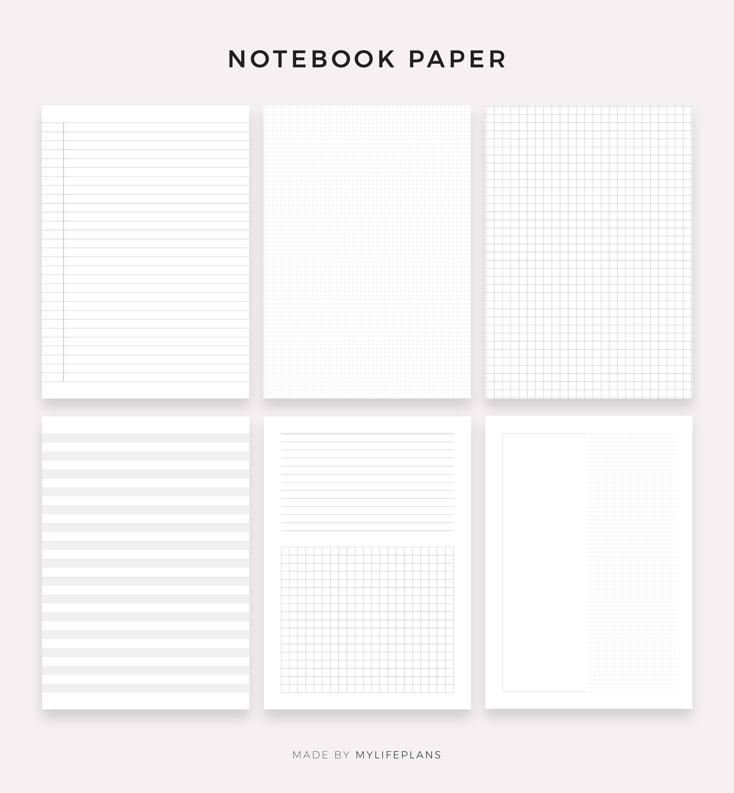 Notes, lined, graph and dot grid paper bundle. It includes 48 unique printable pages to choose from. Just download, print and get started right away!