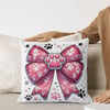 - Design Details: Glossy pink bow, white paw prints, gold outline, and paw-shaped embellishment with heart details