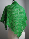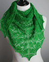 “Foglie e Cardi” means “Leaves and Thistles” in Italian, and this shawl features lace motifs that resemble both. It is worked from the top down, starting with a garter tab, and has both charted and written directions.