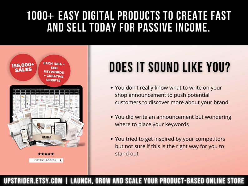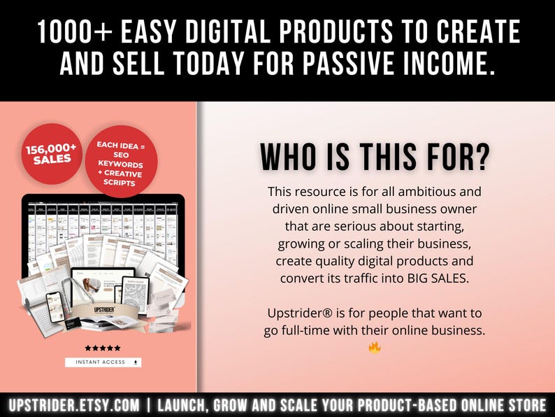 This digital products ideas resource is for all ambitious and driven online small business owner who is serious about driving QUALITY traffic into their store and converting it into BIG SALES. Upstrider is for people who want to go full-time with their online business. 🔥