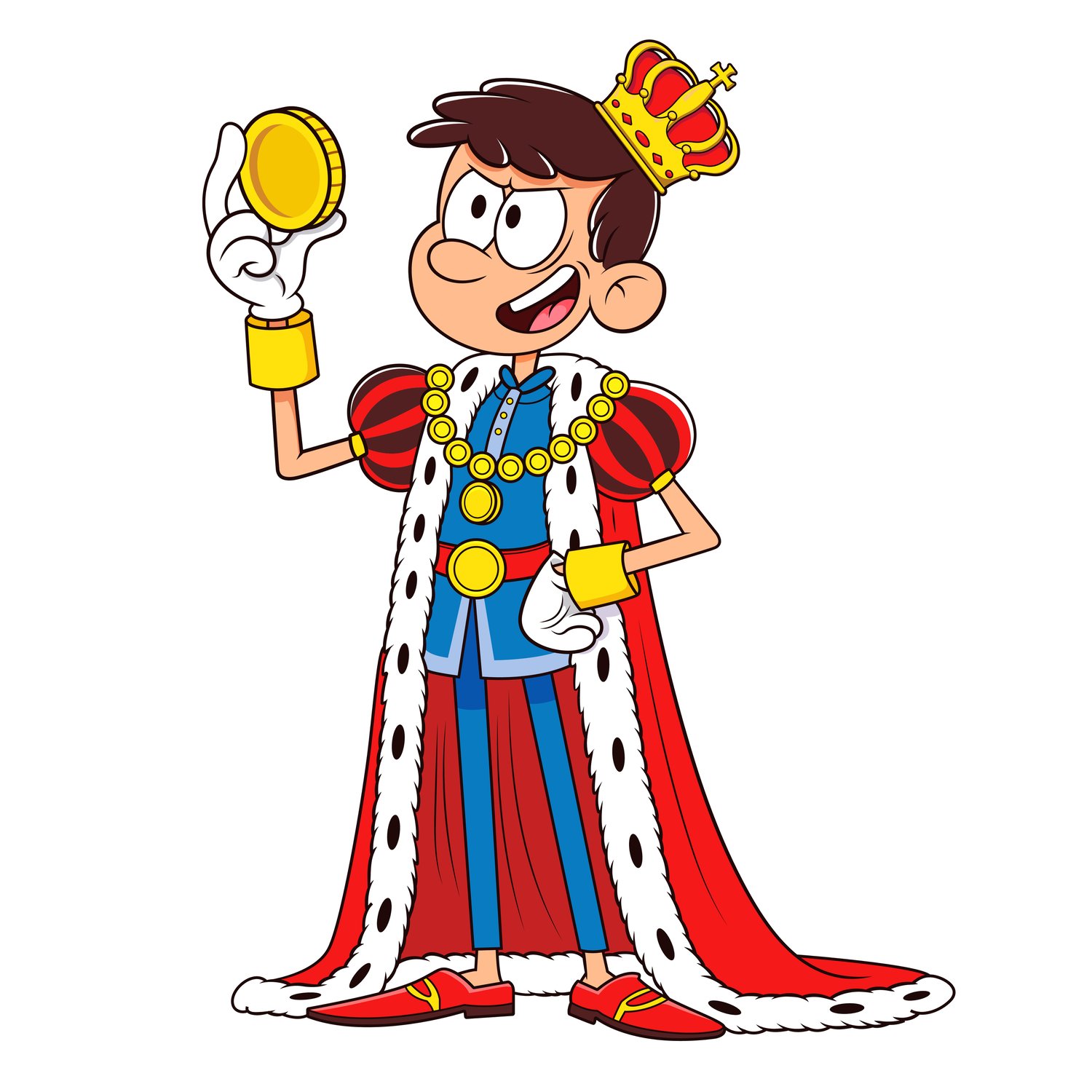 Funny Cartoon King Holding a Gold Coin