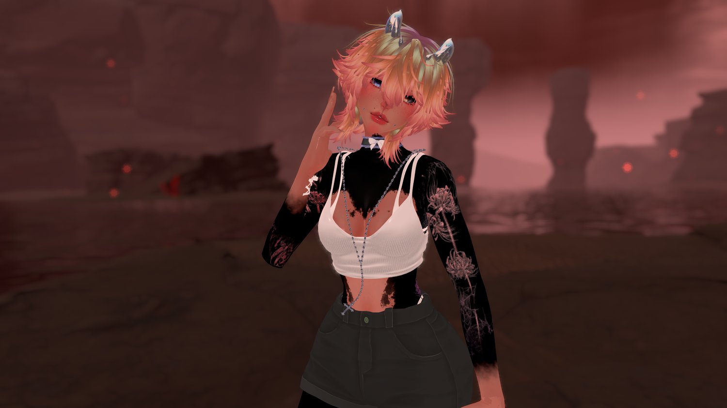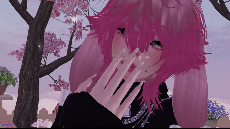 Textures (Makeup and body texture by KeresNecronym (DO NOT REUSE), 23Mink's Matcap Pack by 23Mink, Saikura's Hair Cards, Cluster Eyes by Mooshi, Hatchling Eye Pack by Mooshi, Void Eye Textures by Jvliette, 髪の毛MATCAP by fiiiiiiisuke, and Gif by Erica Anderson on Giphy.)
