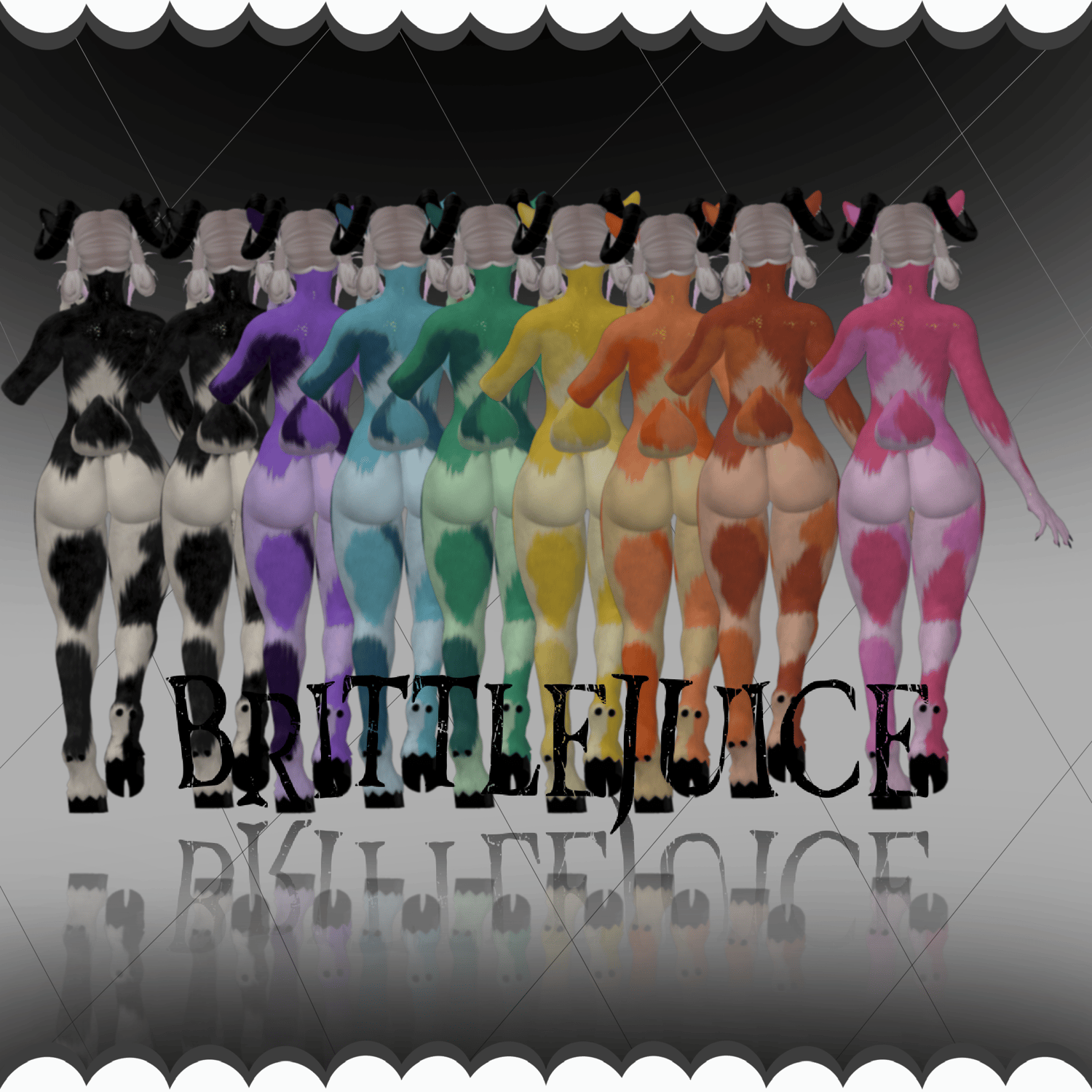Cow print re-textures for the Foxi Paws Lilith Deer! THESE ARE SFW TEXTURES ONLY! This is a FUR RE-TEXTURE ONLY. To purchase the models shown, please follow the link(s) below to :