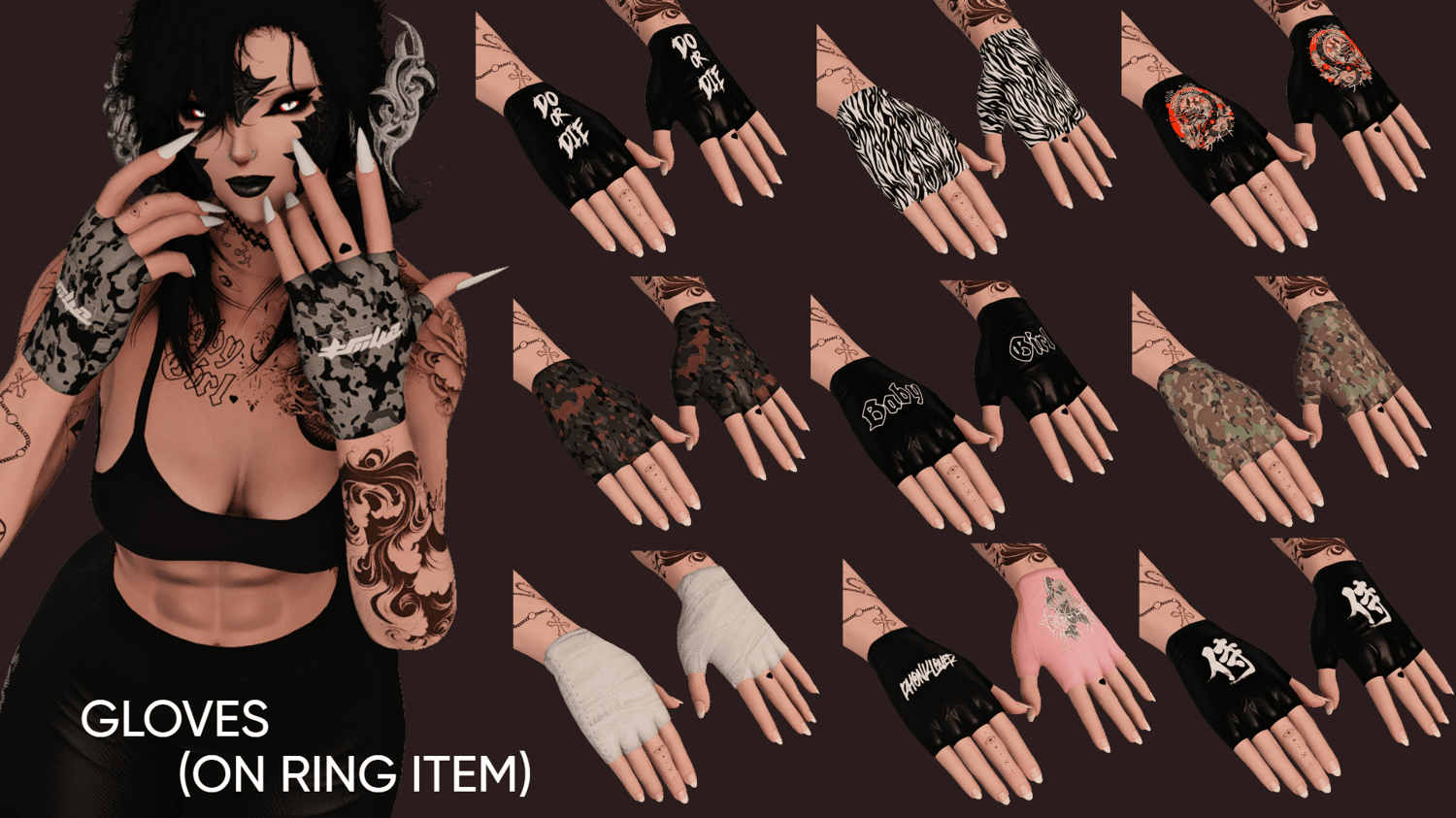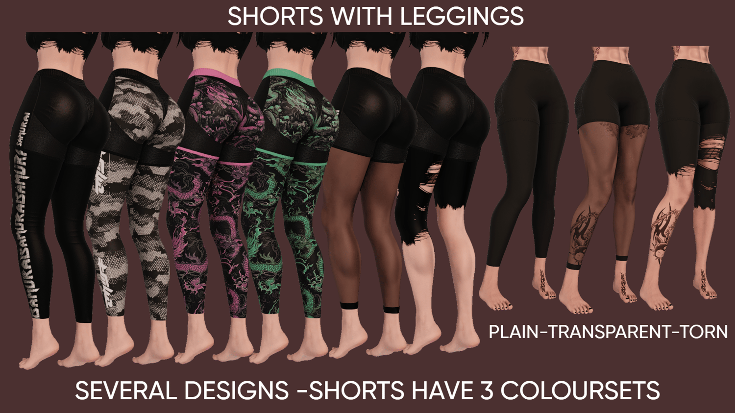➤ Comments: 1 Pair of NSFW leggings, 11 Glove designs with 2 Fabric Options, 6 Skintight Leggings designs with 2 Fabric Options, 12 Shorts With Leggings designs combined with 3 Fabrics Options on leggings. Dyeable.