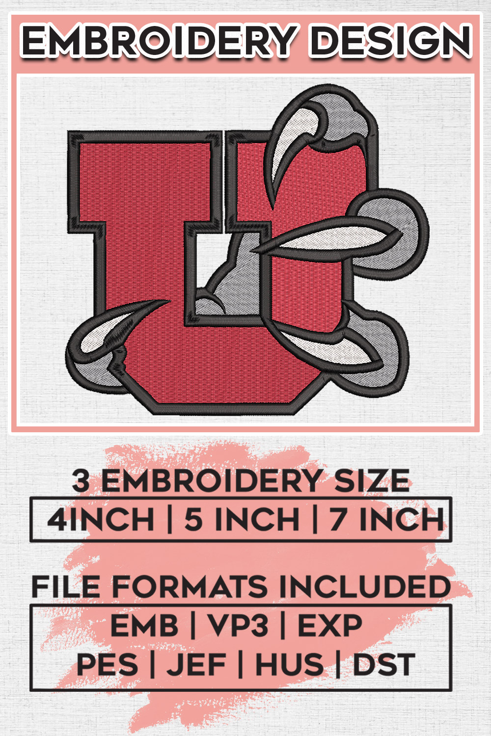 Utah Utes College Football Team Mascot Logo Embroidery Designs, NCAA Utah Utes Machine Embroidery Files, NCAA Logo embroidery designs, NCAA Utah Logo, Digital Download