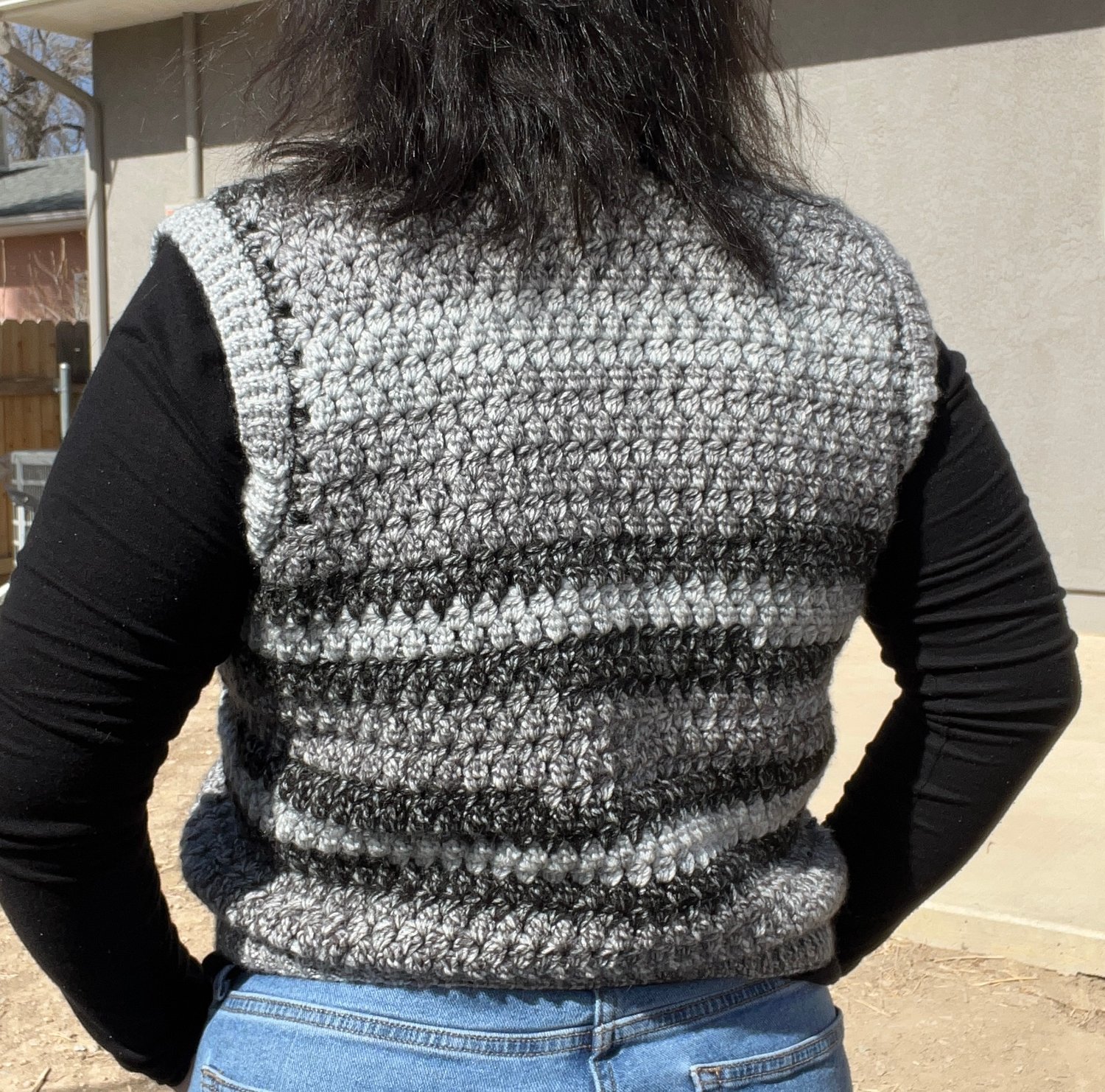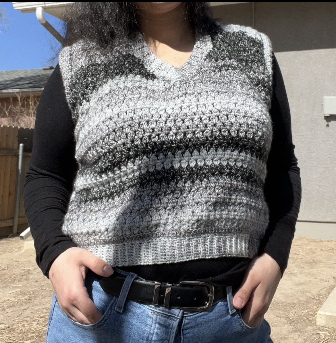 The Cairngorm Vest is a modern, wearable crochet garment made using a modified granny-style cluster stitch to be "more sophisticated than a regular granny stitch" according to testers. With clever shaping techniques, it is designed to fit well, hold its shape, and feel like a quality wardrobe piece you’ll actually wear, not just make. The Cairngorm Vest features built-in shaping, a structured fabric, and a clean finish using join-as-you-go ribbing.