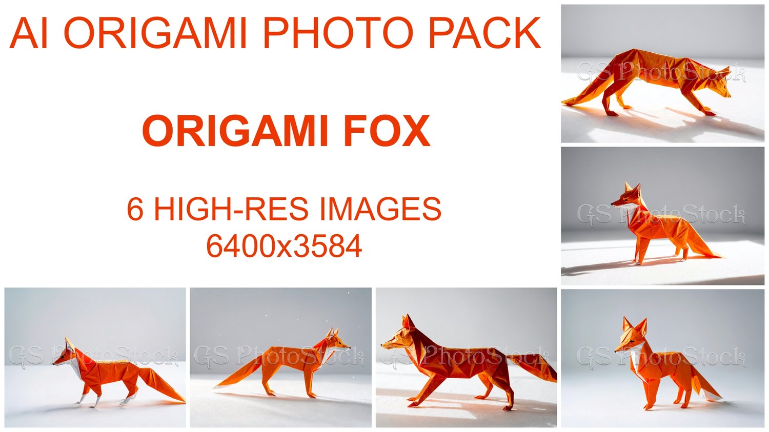 The Origami Fox AI Photo Pack contains a curated selection of high-quality AI-generated photos inspired by the art of origami.