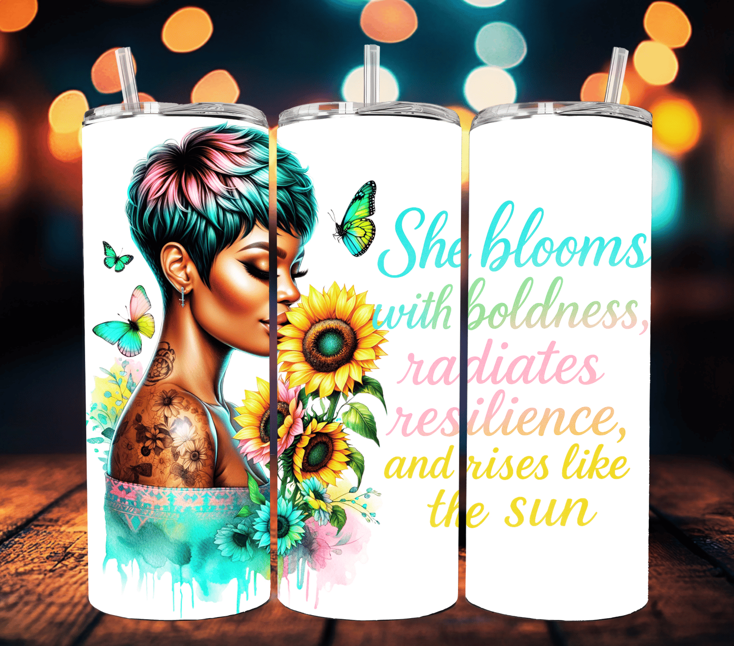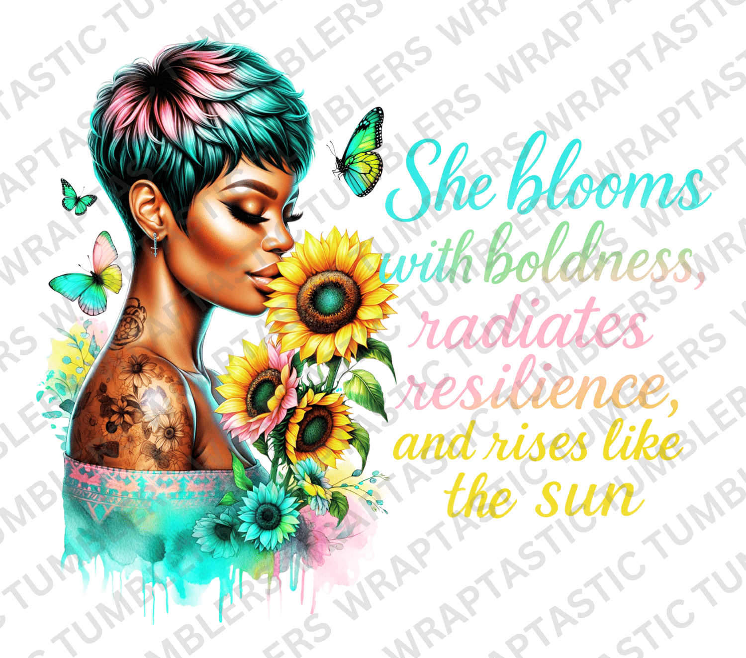 Empower and inspire with this “She blooms with boldness, radiates resilience, and rises like the sun” PNG. Perfect for sublimation on shirts, mugs, tumblers, and more, this high-resolution design combines motivational words with vibrant floral beauty. Ideal for crafters wanting uplifting, eye-catching artwork.