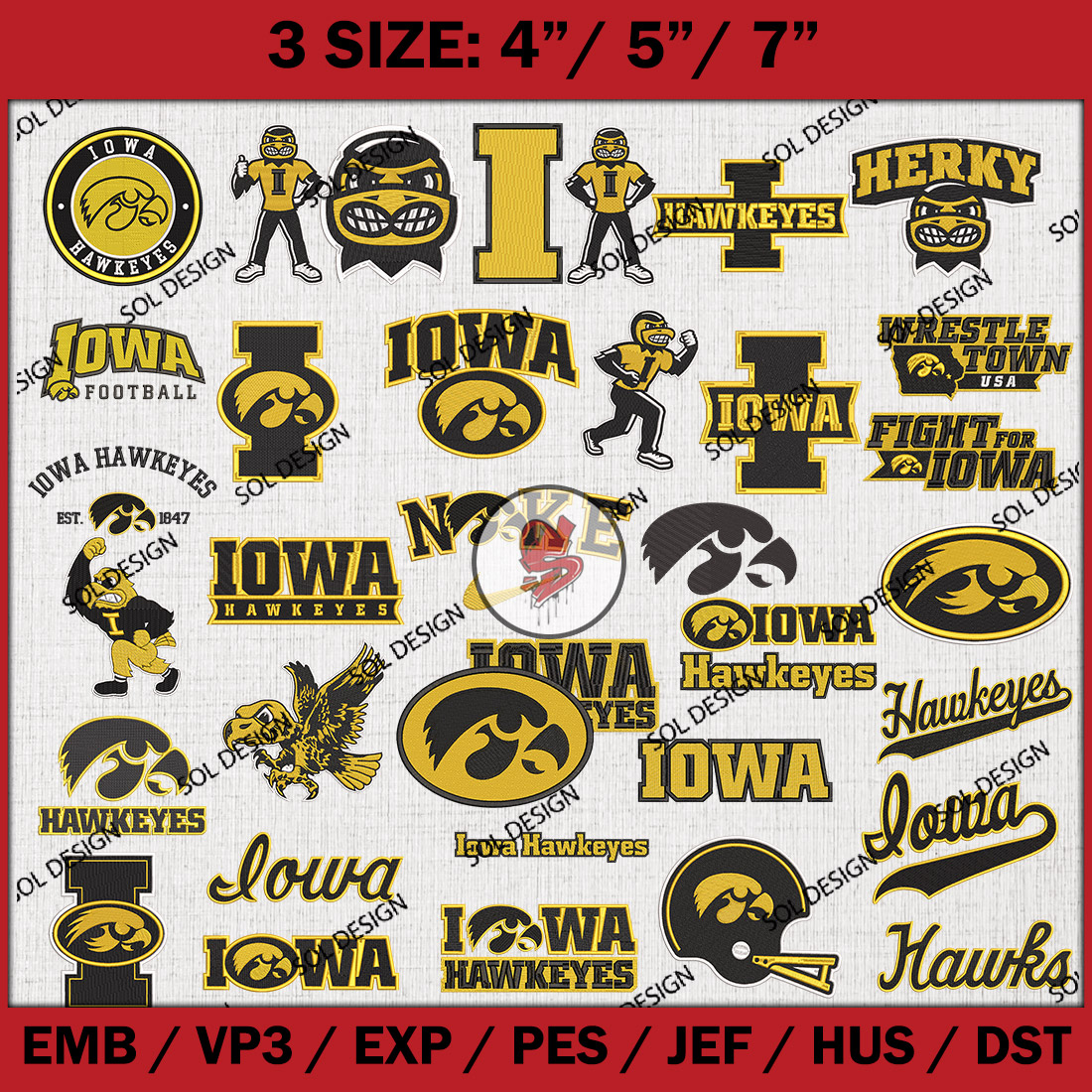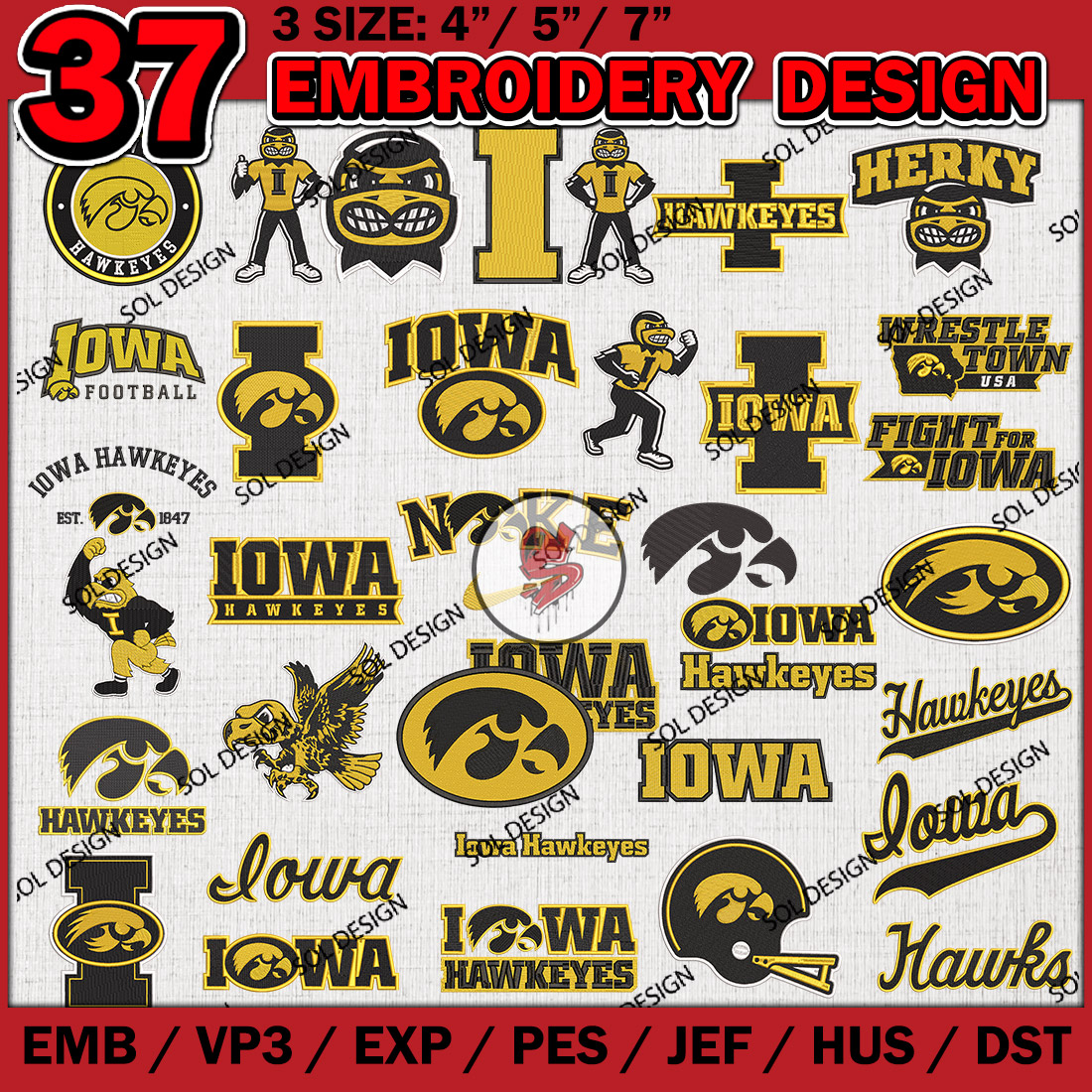 37 Iowa Hawkeyes Bundle Embroidery Files, College Football Embroidery Designs, NCAA Iowa Hawkeyes Machine embroidery Design Bundle, Ncaa Iowa Logo bundle, Digital Download