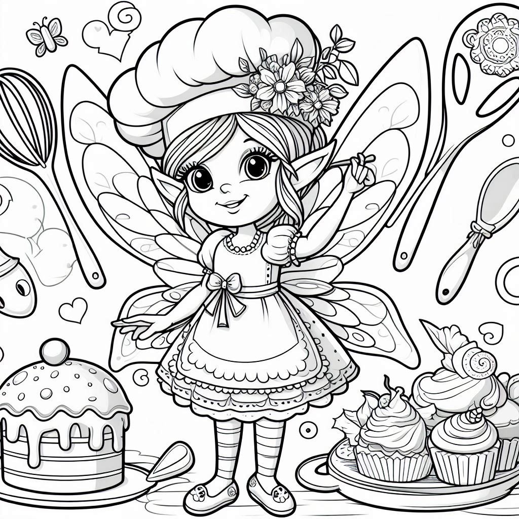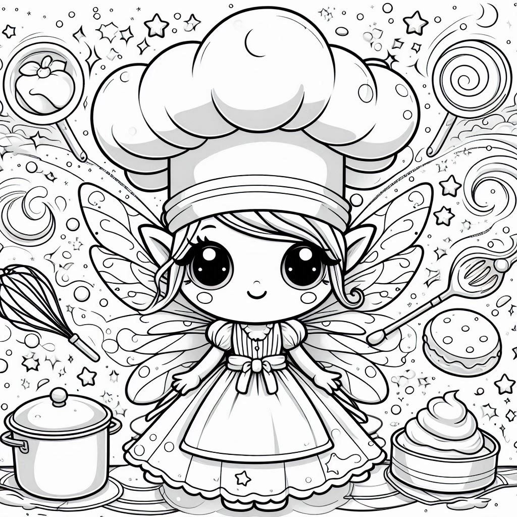 The cook fairy, 62 designs, coloring ebook, digital product, instantly download