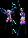 Features: Custom emissions and gestures, many accessories, outfit color swap, hue shift (outfit, legs, and hair), five different skin tones, hair swap, and DPS!
