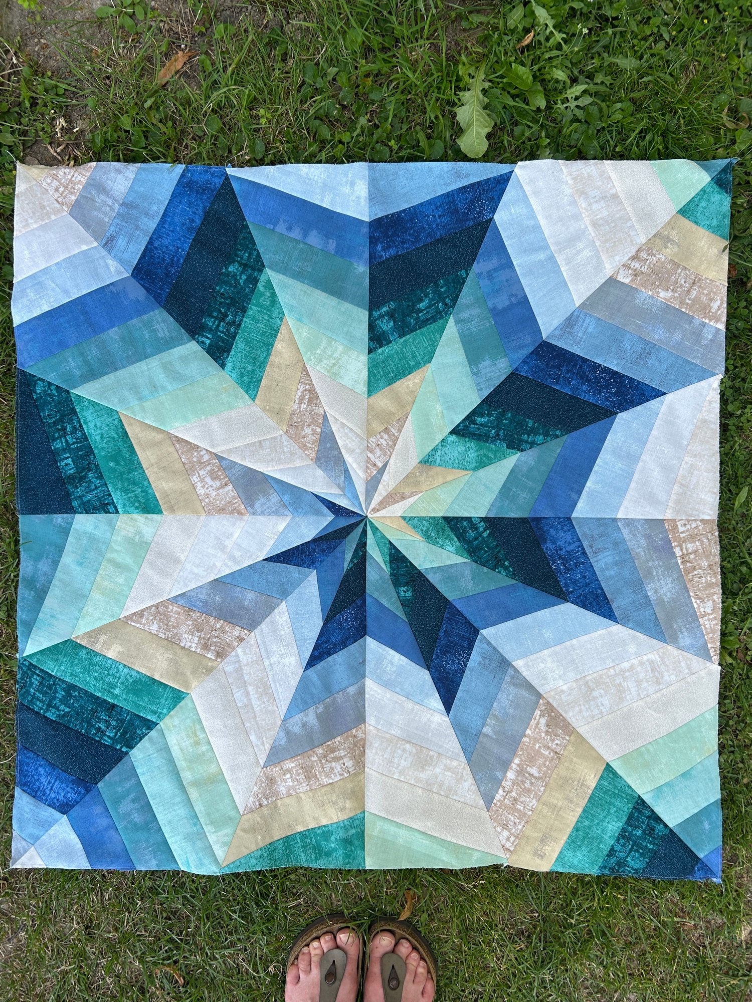 This pattern includes 3 large paper sheets with the templates for both a 2x2m / 78"x78" and for a 1x1m / 39"x39" size quilt and a booklet with sewing instructions in English. This pattern is perfect for large scale prints as well as solid colour fabrics.
