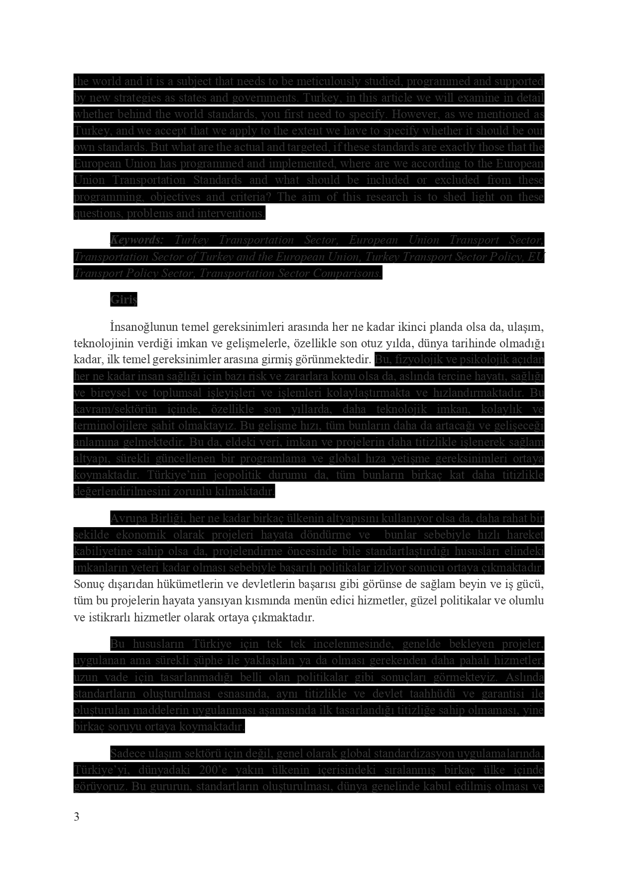 HAZIR MAKALE - AVRUPA BİRLİĞİ VE TÜRKİYE ULAŞTIRMA POLİTİKALARI KARILAŞTIRMASI