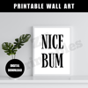 Nice Bum Bathroom Sign Print Funny Guest Toilet Wall Art Quote Poster White Black Text Trendy Typography Printable Digital Download JPEG